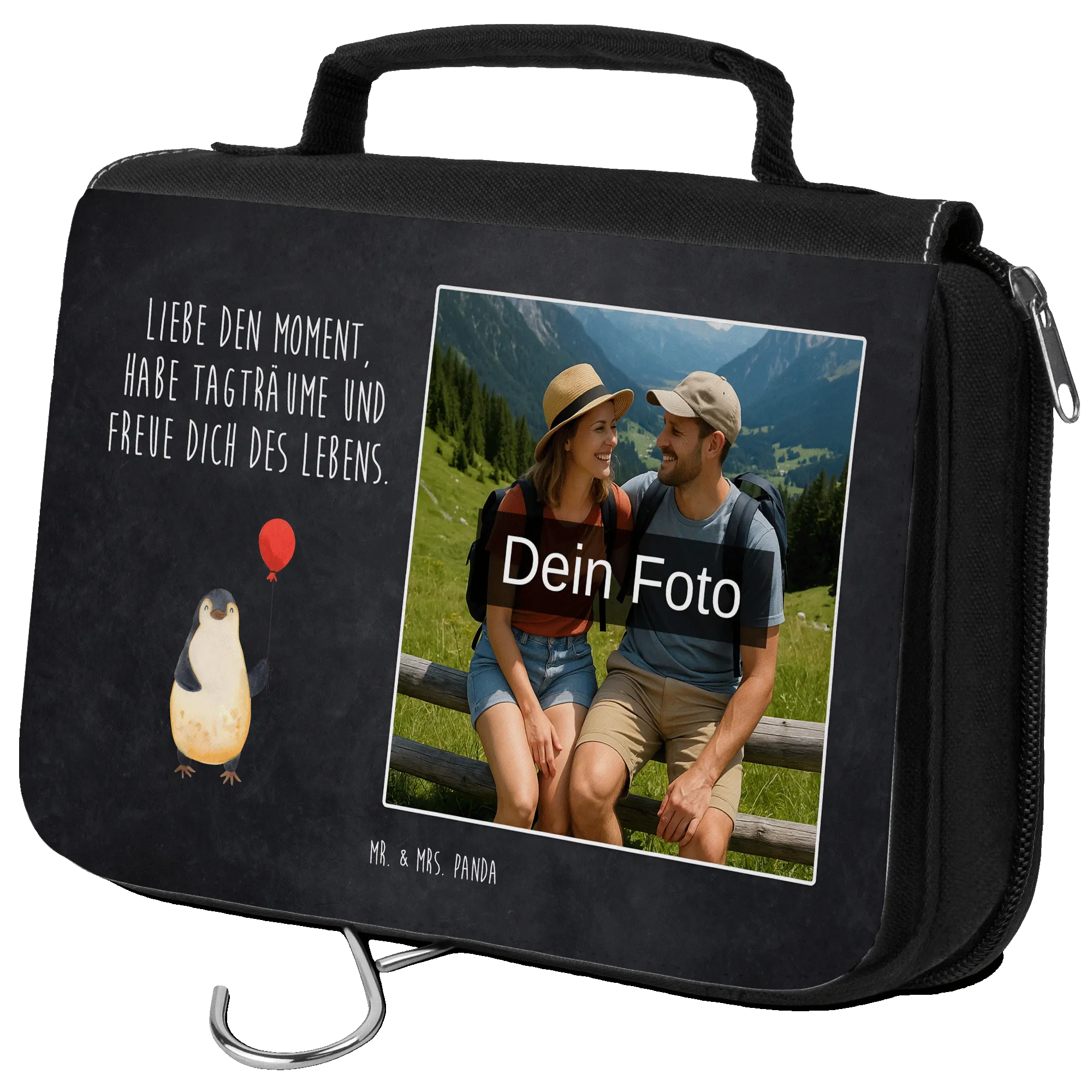 Personalisierter Foto Kulturbeutel Pinguin Luftballon - Eisblau