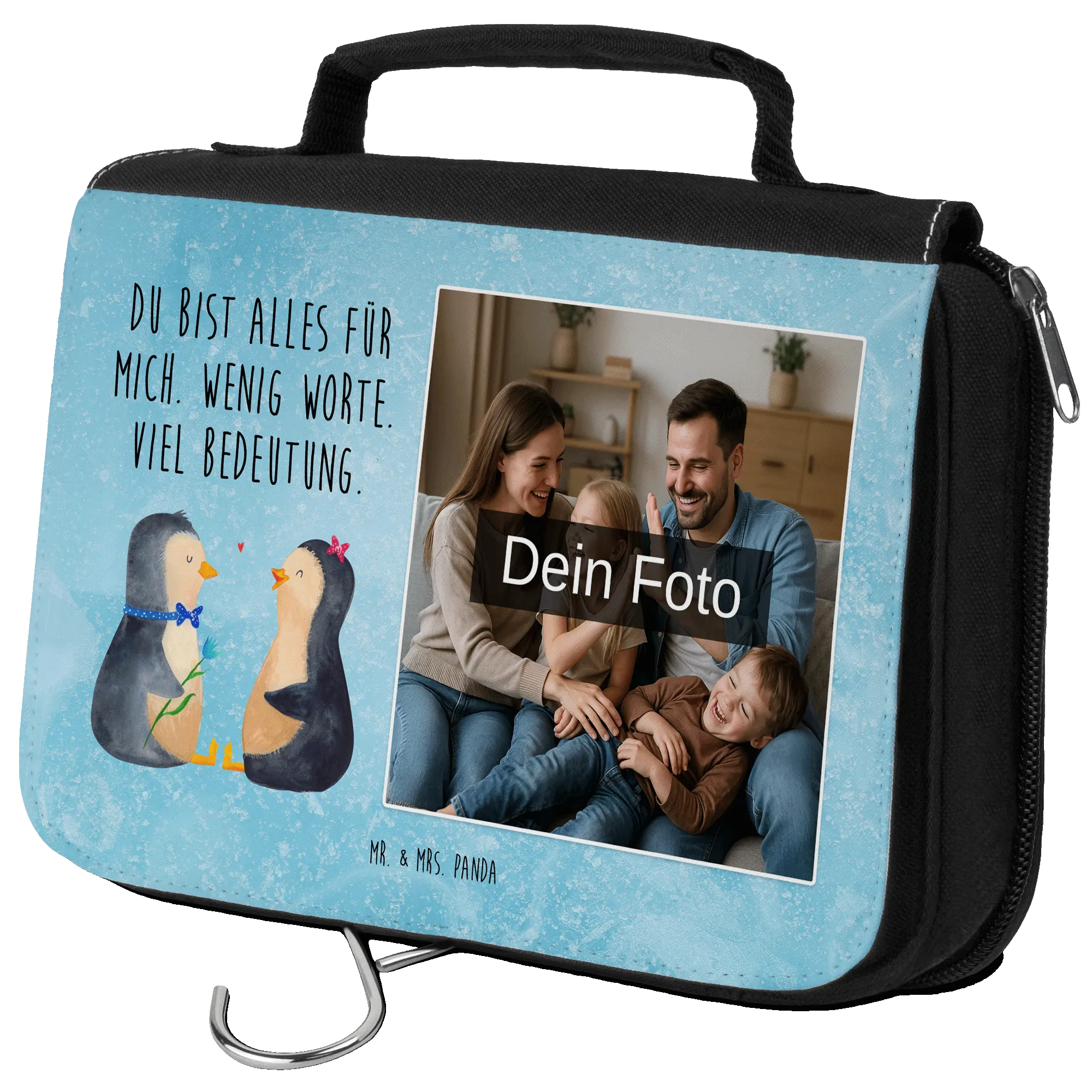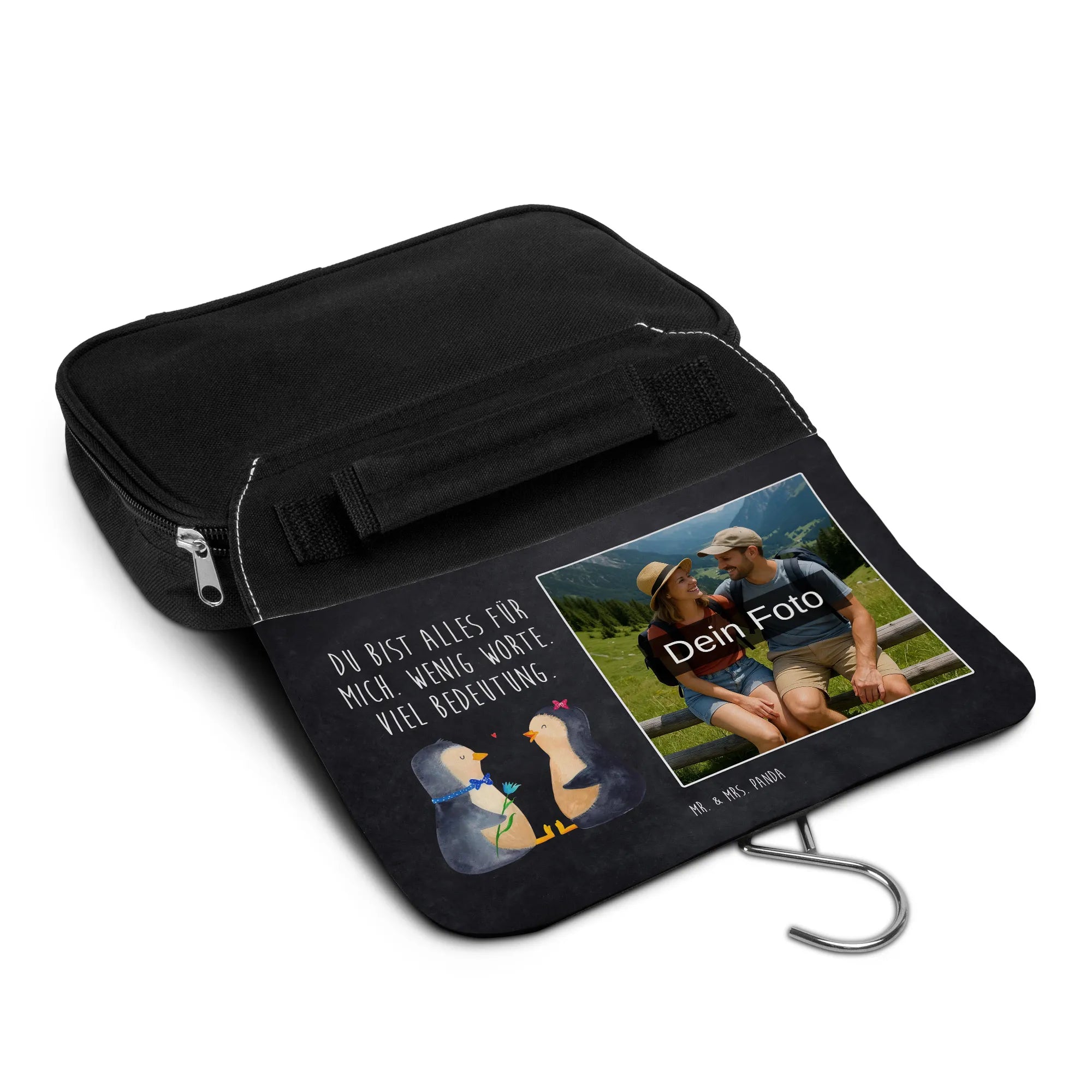 Personalisierter Foto Kulturbeutel Pinguin Pärchen - Kreidetafel