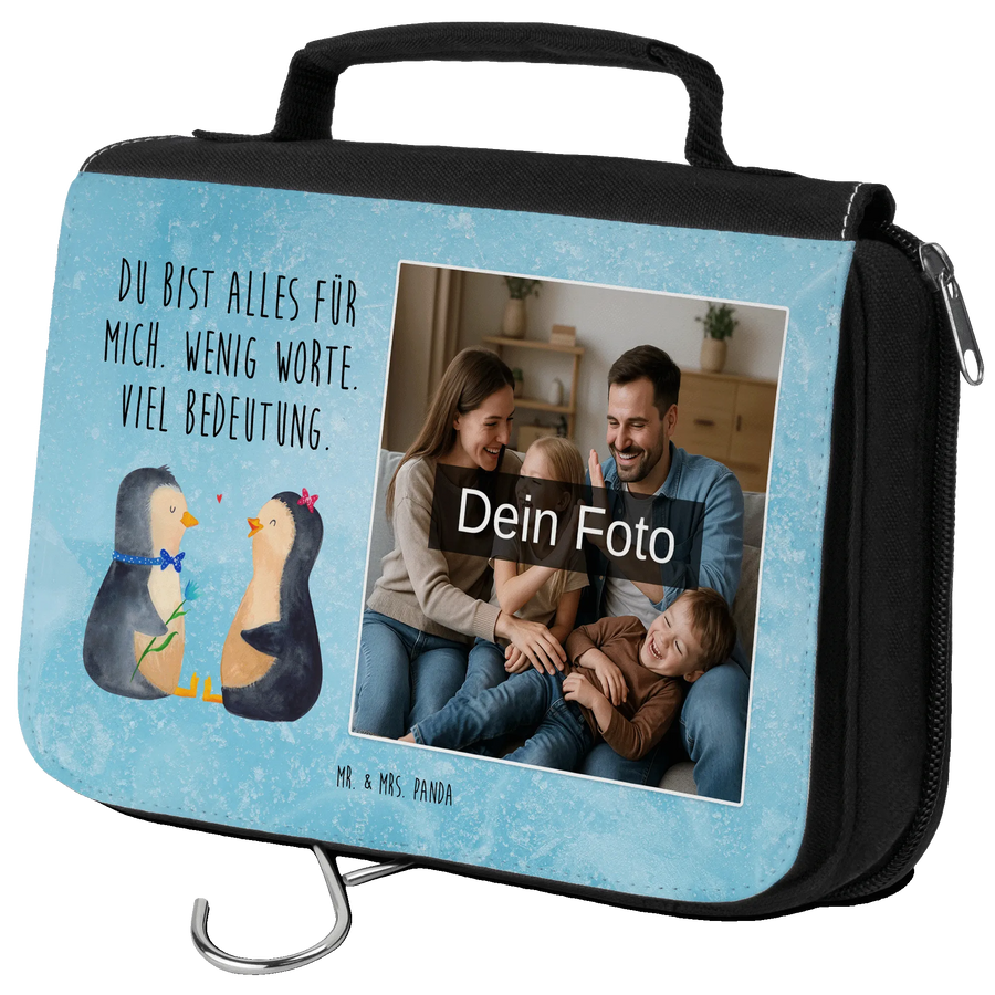 Personalisierter Foto Kulturbeutel Pinguin Pärchen - Eisblau