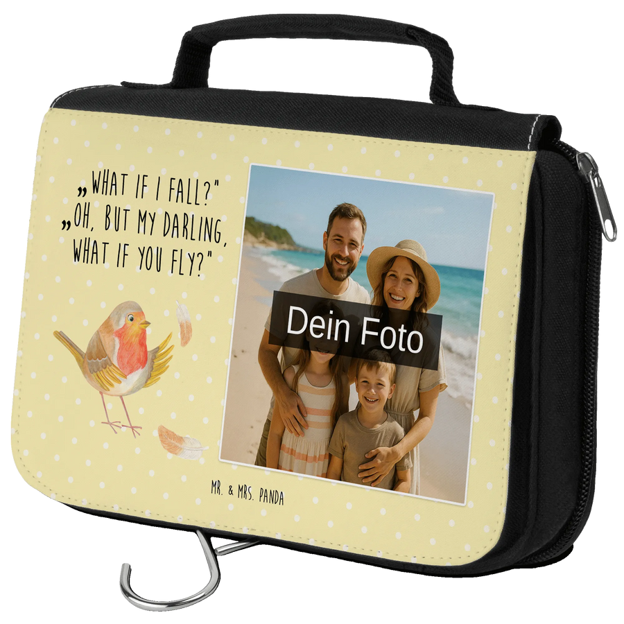Personalisierter Foto Kulturbeutel Rotkehlchen Federn