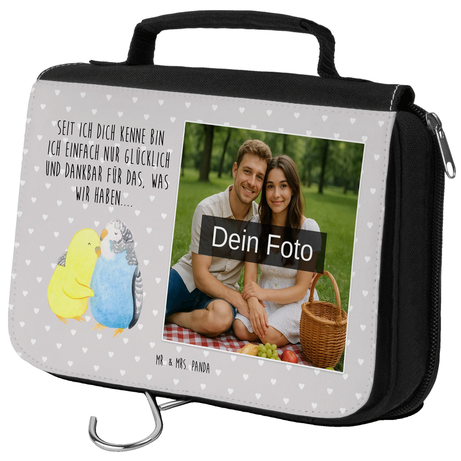 Personalisierter Foto Kulturbeutel Wellensittich Liebe - Grau Pastell