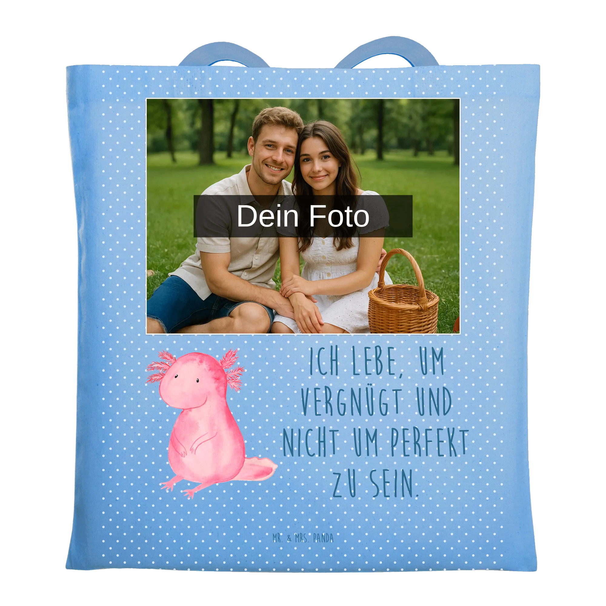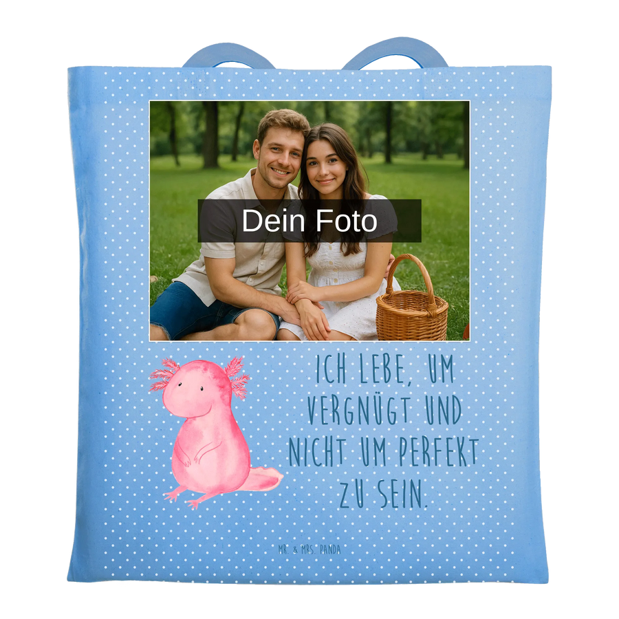 Personalisierte Foto Tragetasche Axolotl Niedlich - Sky Blue