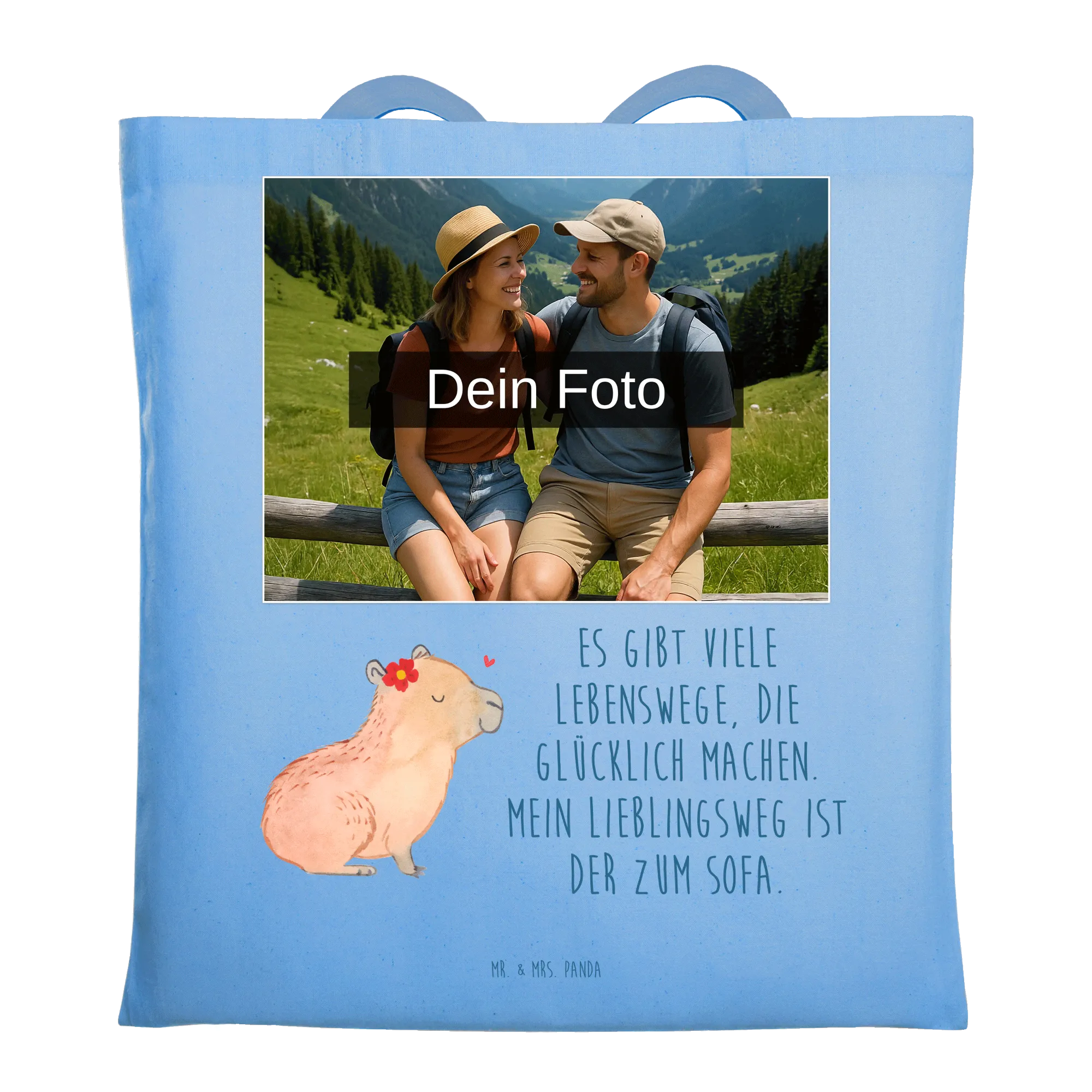 Personalisierte Foto Tragetasche Capybara Blume - Sky Blue