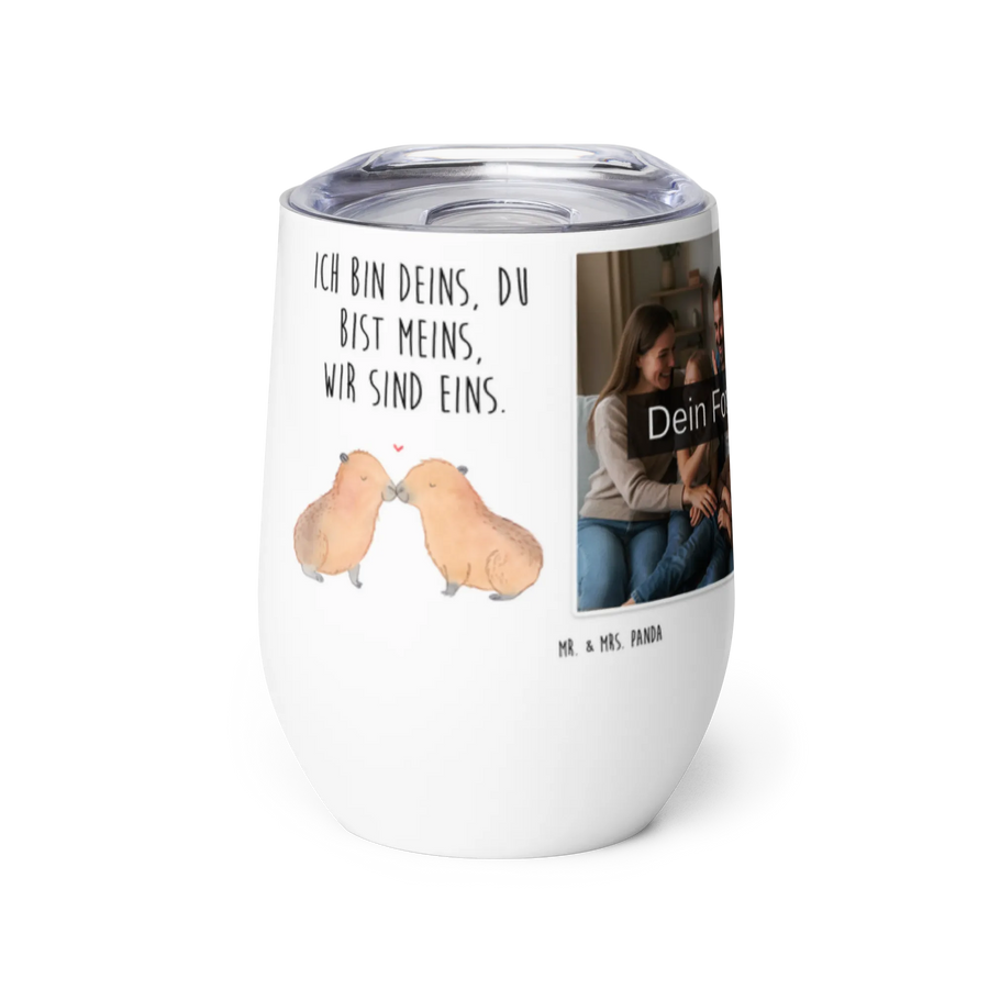 In a cozy moment of togetherness, two capybaras gently touch noses, their affectionate gesture forming a heart that radiates love. Captured in soft browns, each detail of their fur is hand-drawn with love, reflecting their serene expressions. Above them hovers a small red heart, symbolizing their bond. This motif beautifully embodies the sentiment 'Ich bin deins, du bist meins, wir sind eins,' celebrating romance and connection. Whether as a romantic gift for an anniversary or a sweet reminder of your love on Valentine’s Day, this piece speaks to the heart, reminding us that true love is about merging two lives into one. Perfect for animal lovers and those seeking a heartfelt keepsake, this design effortlessly encapsulates the warmth and coziness of being in love.
