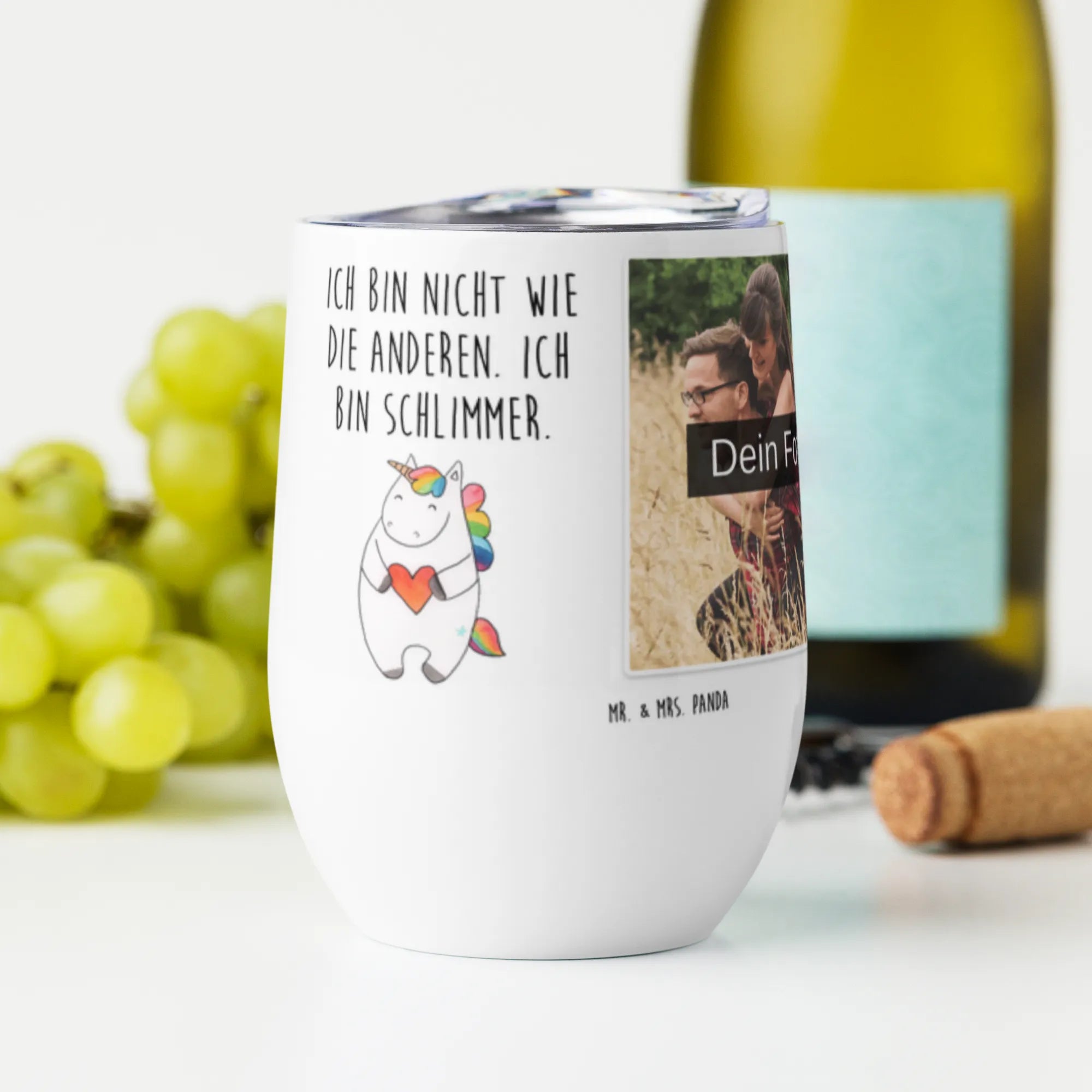 Personalized Photo Wine Mug unicorn Heart