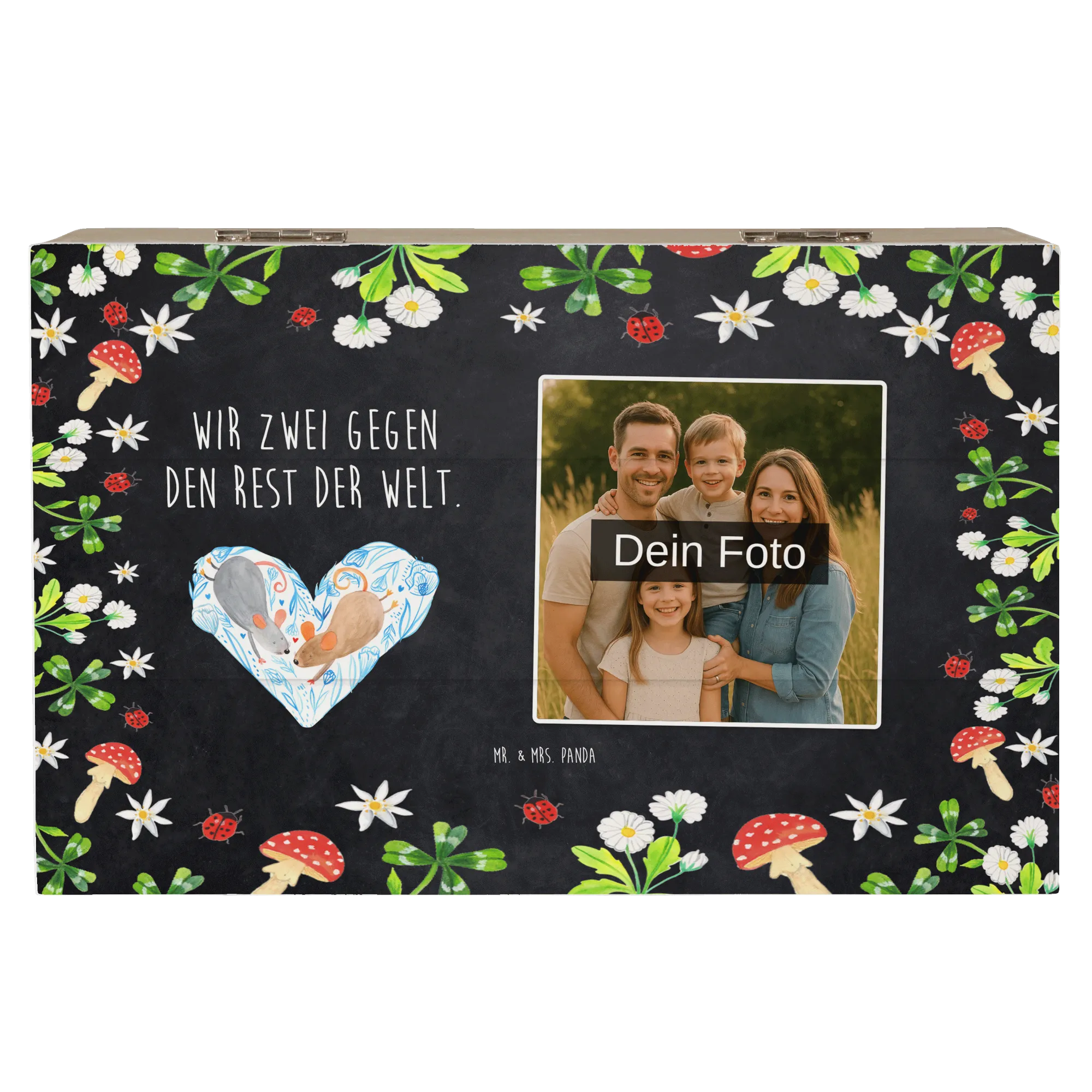 Personalized Photo Wooden Box Mice heart - 22 x 15 cm - White