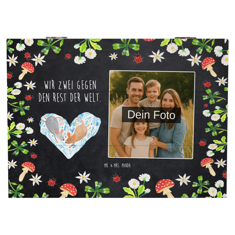 Personalized Photo Wooden Box Mice heart - 25 x 18 cm - Chalkboard