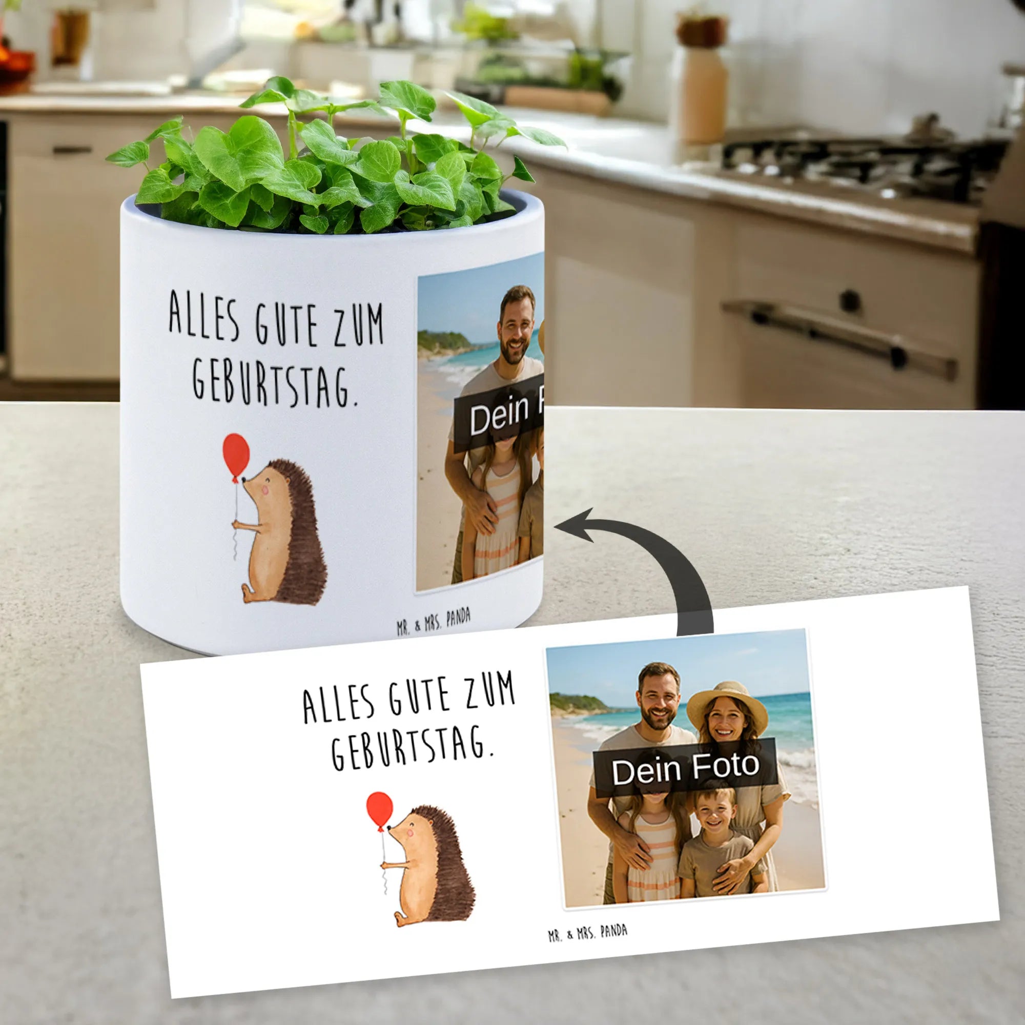 Personalisierter Foto XL Blumentopf Igel Luftballon – Mr. & Mrs. Panda
