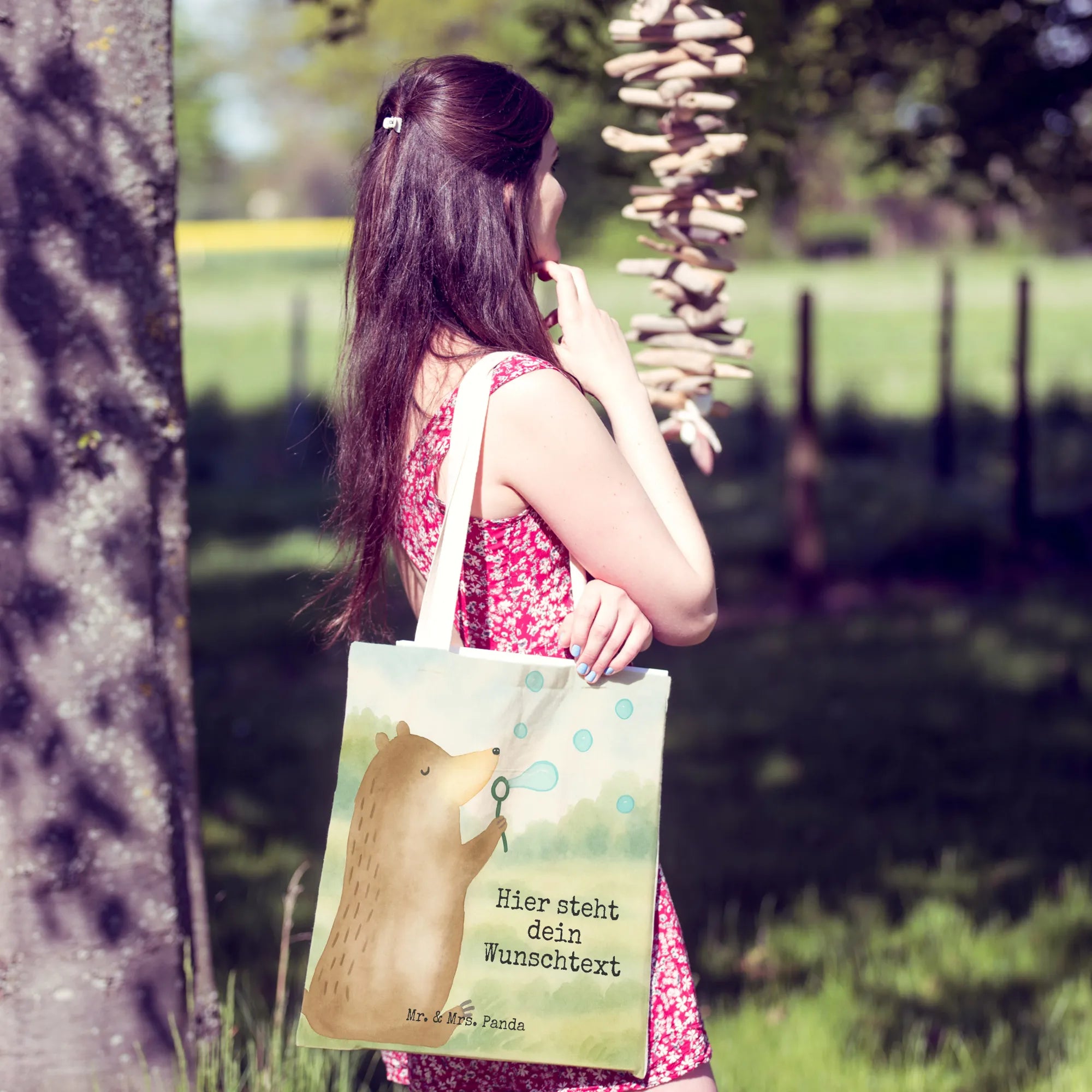 Personalisierte Einkaufstasche Bär Seifenblasen Design