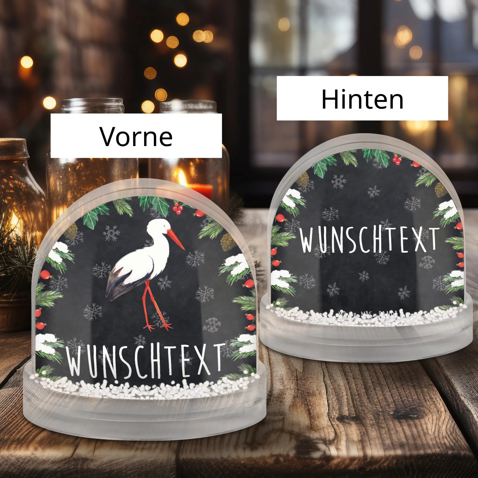 Personalized Snow Globe Stork - natural paper