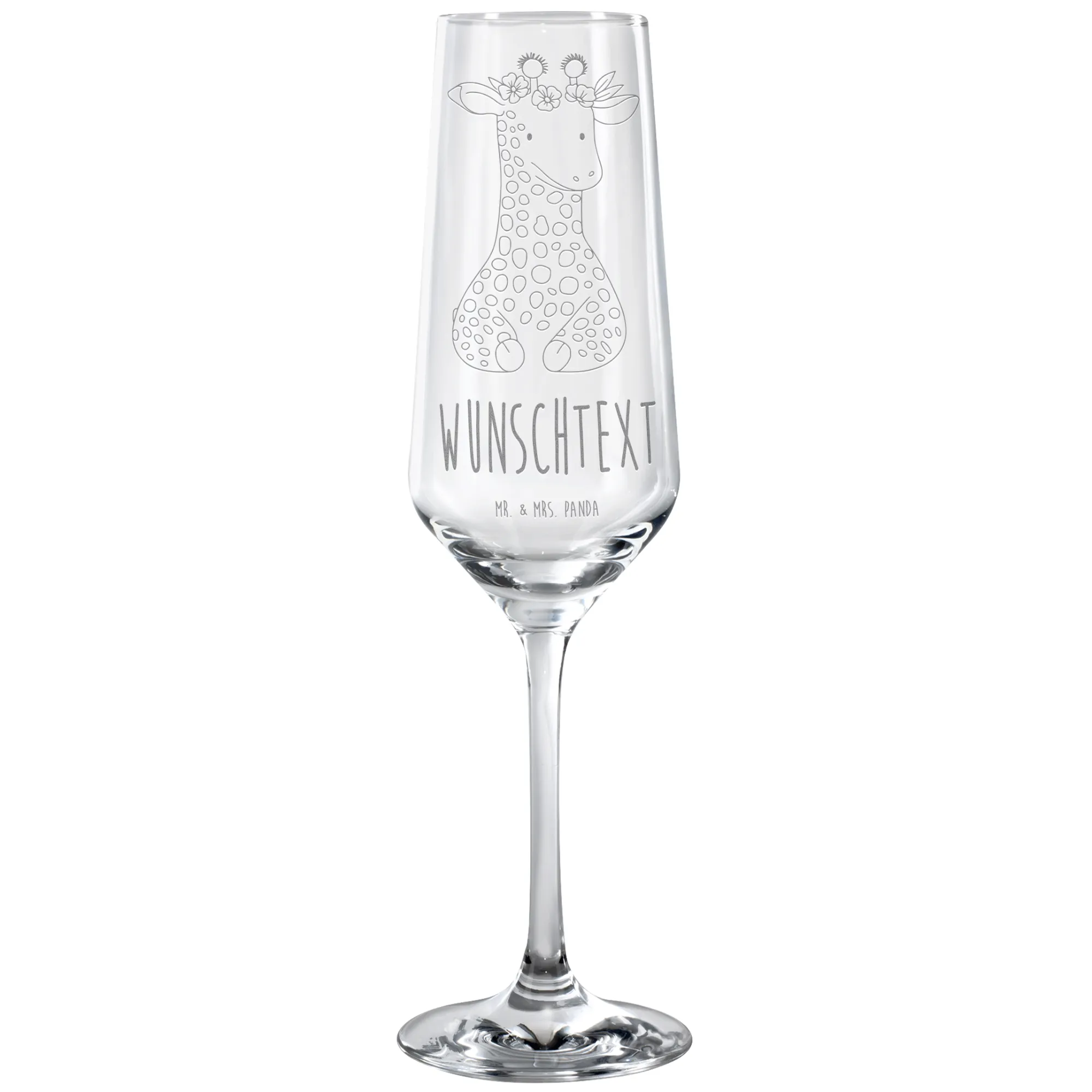 Personalized Sparkling Wine Glass giraffe flower wreath – Mr. & Mrs. Panda