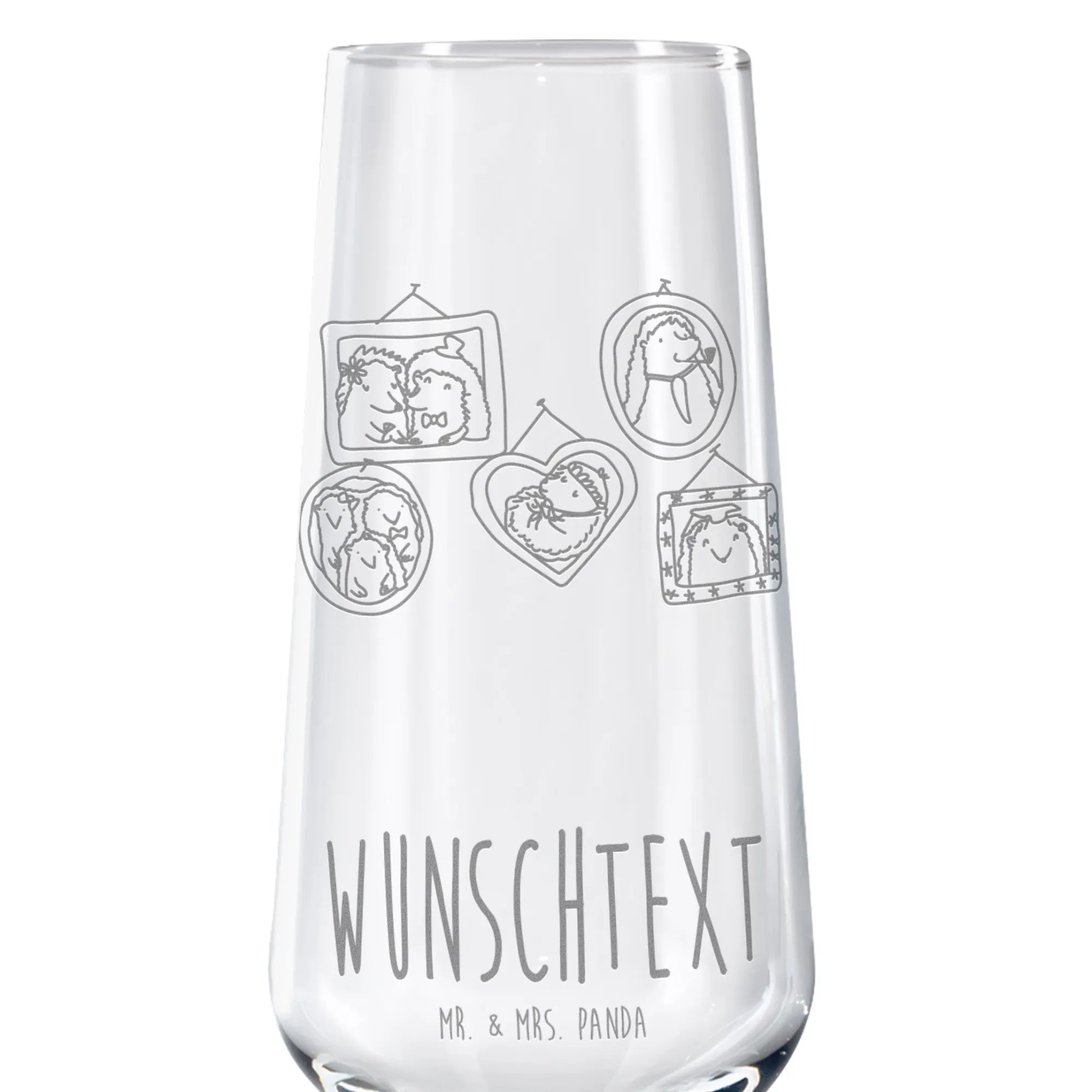 Personalized Sparkling Wine Glass Hedgehog family – Mr. & Mrs. Panda