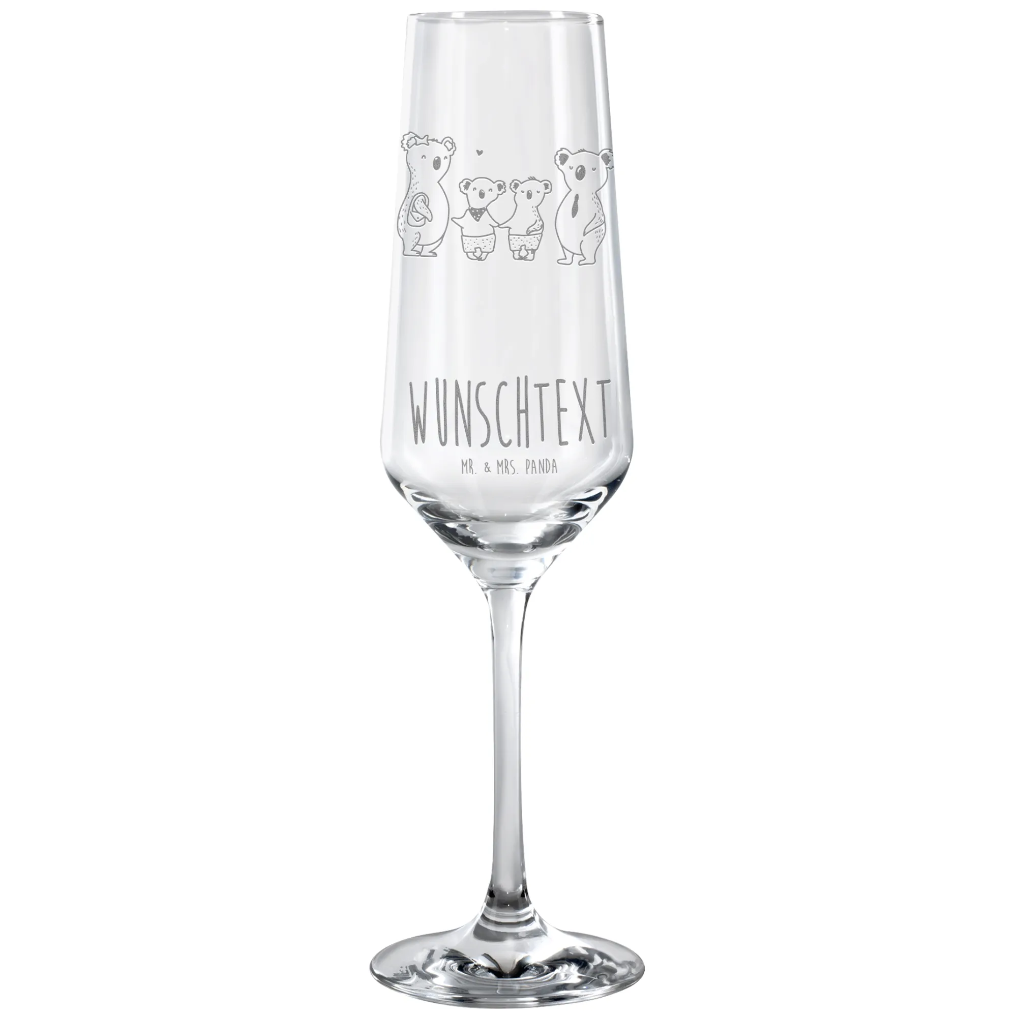 Personalized Sparkling Wine Glass Koala family with two kids