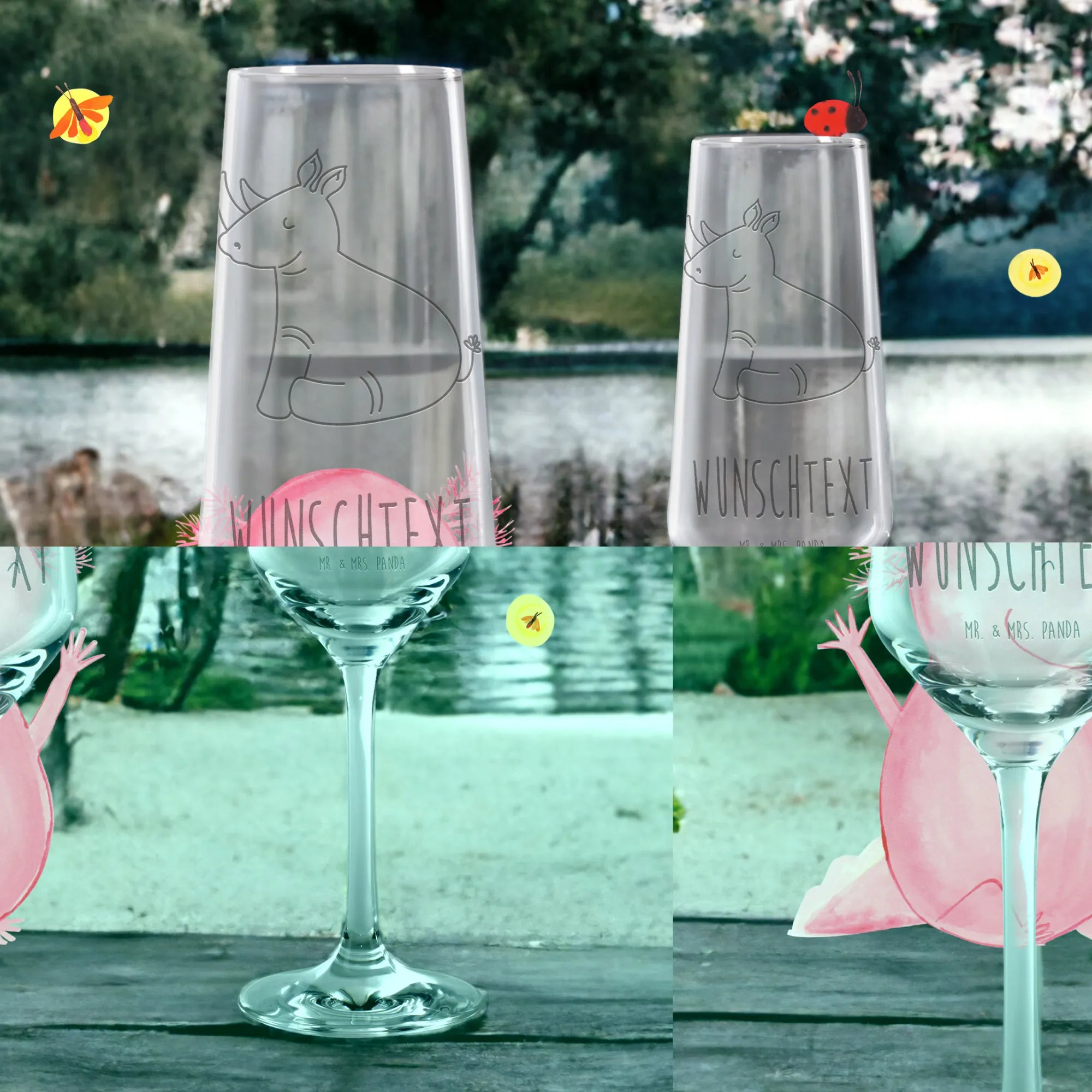 Enhanced with inspiring quotes and enchanting designs from Mr. & Mrs. Panda, this champagne glass is a real eye-catcher for special moments.