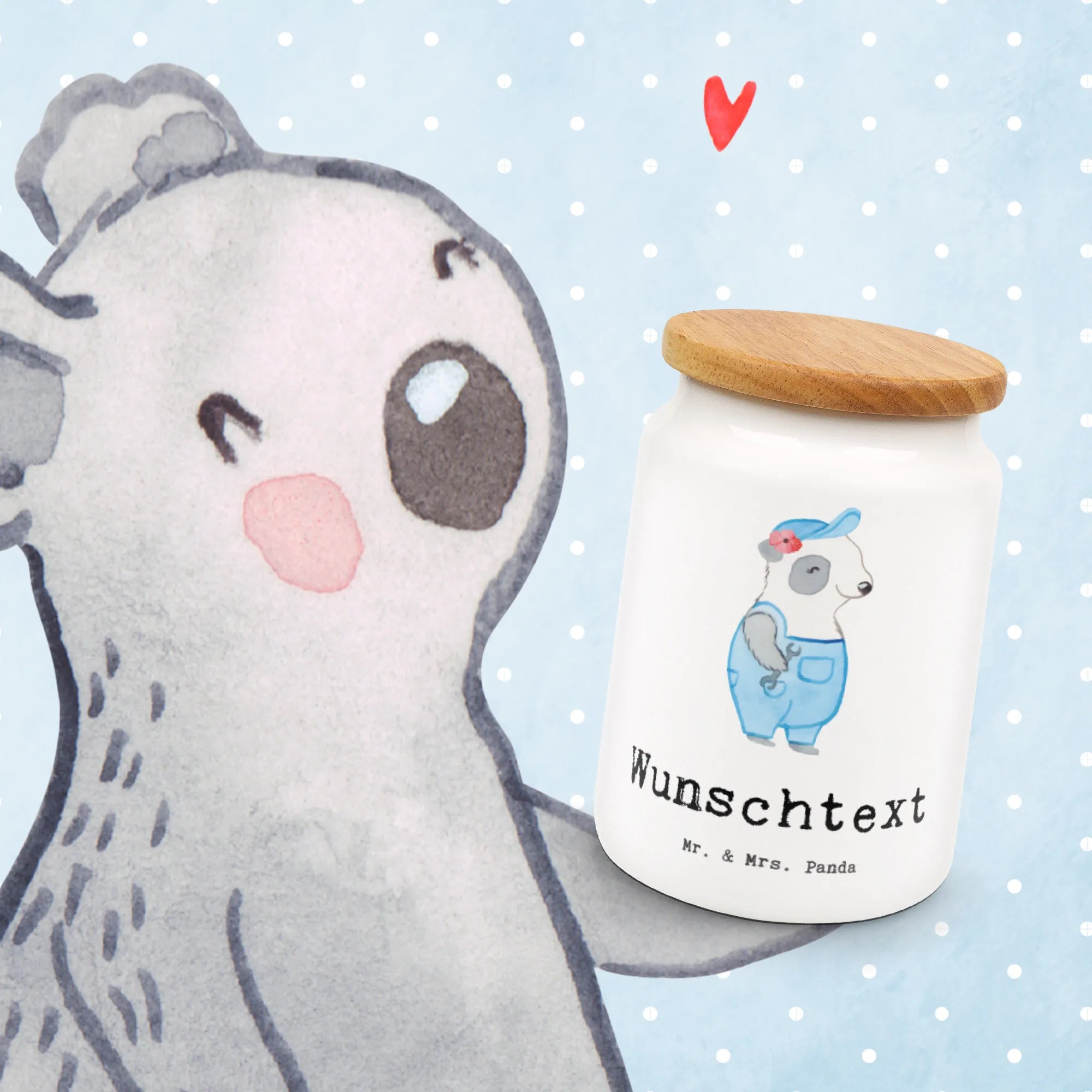 Introducing our charming Personalized Storage Jar from Mr. & Mrs. Panda! This beautifully designed jar is perfect for keeping your kitchen organized and stylish. Measuring 145 mm in height and 95 mm in diameter, it holds up to 650 ml of your favorite snacks, spices, or other treasures. Personalize it with your choice of text or name to make it uniquely yours! Made from high-quality ceramic, this storage jar not only looks great but is also functional with a solid wooden lid featuring a plastic seal to keep everything fresh. Plus, it's dishwasher safe, making it easy to clean. Whether as a gift or a treat for yourself, this jar is a wonderful addition to any home decor!