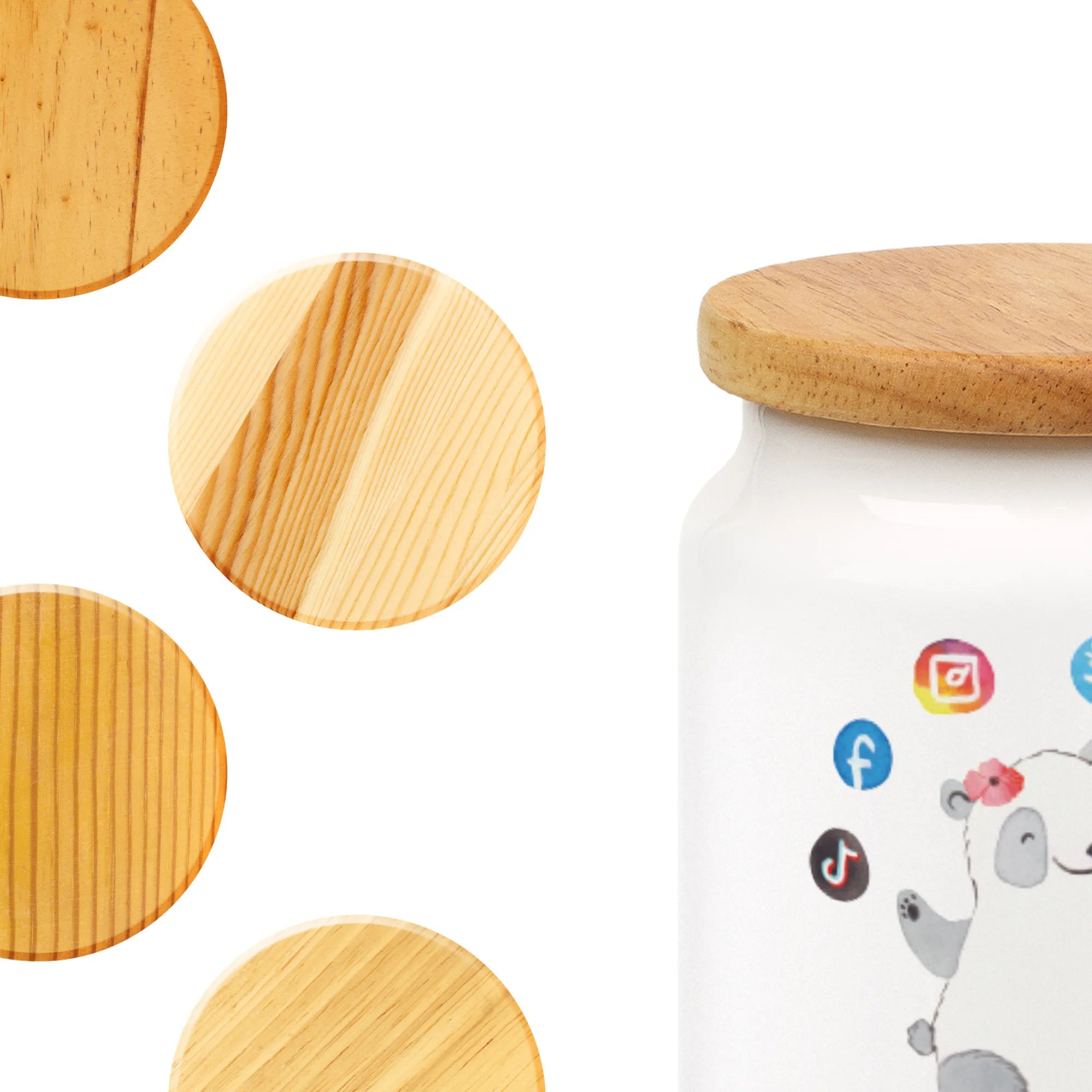 🐼 Crafted from durable ceramic, this jar features a sealable wood lid for freshness.