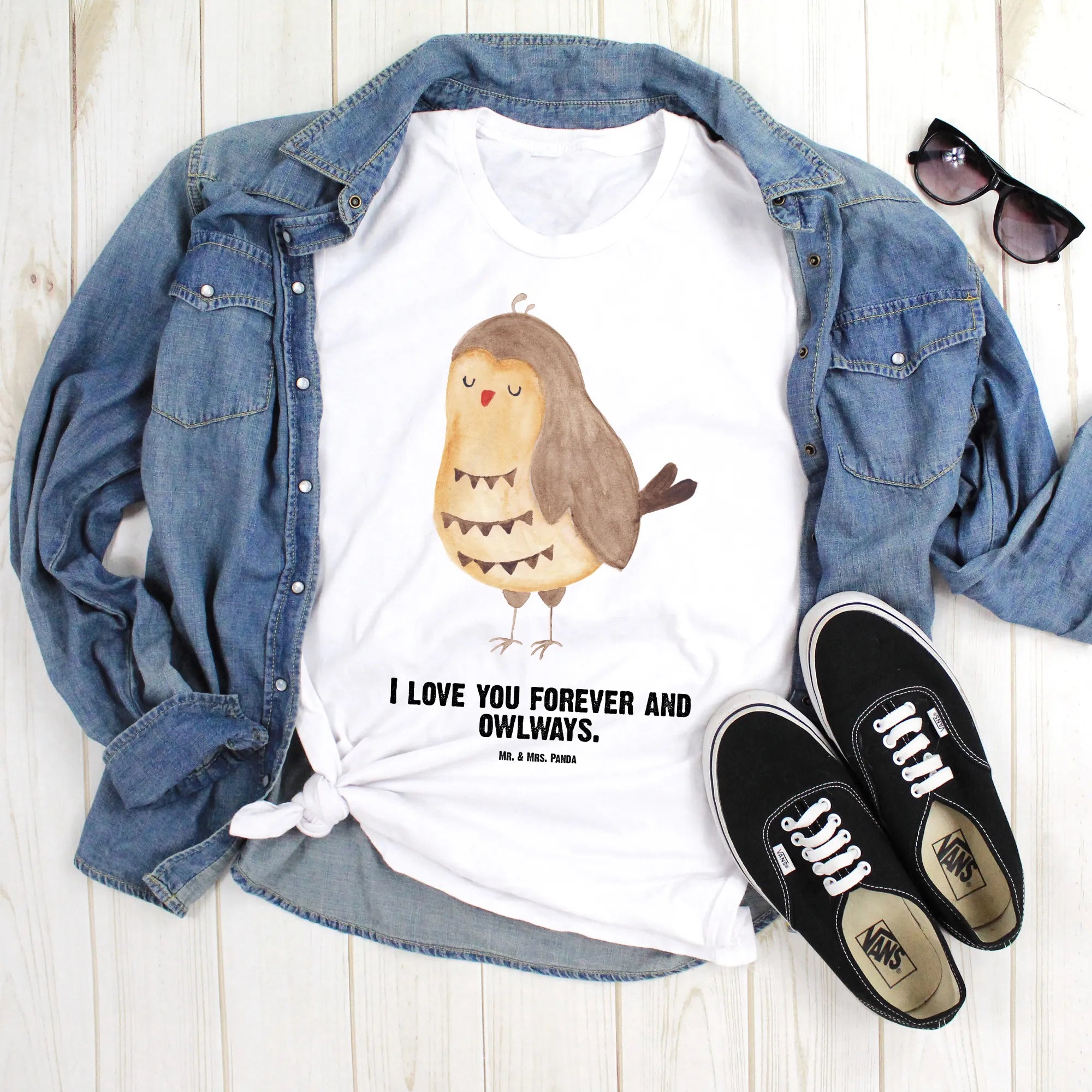 Personalised T-Shirt Owl Satisfied Wunschtext, T-Shirt mit Aufruck, T-Shirt mit Namen, T-Shirt Personalisiert, Bedrucken, Eule, Romantisch, Geschenk Hochzeitstag, Wortspiel Lustig, Owl, Eule Spruch, Spruch schön, Eule Deko, Liebe Spruch