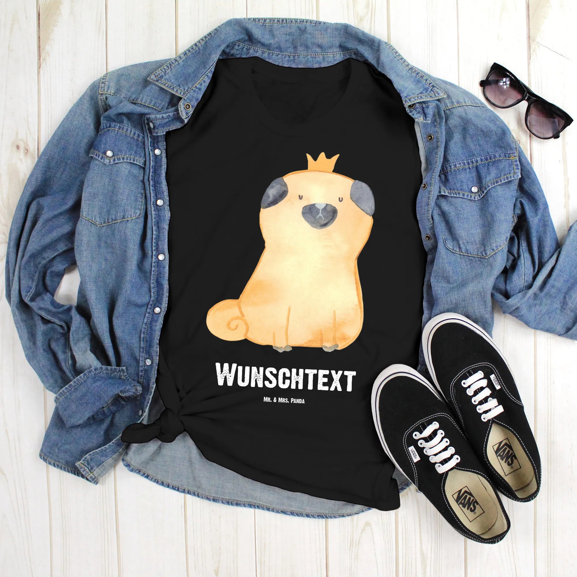 Personalised T-Shirt pug Crown - Größe XXL Personalisiertes T-Shirt - White