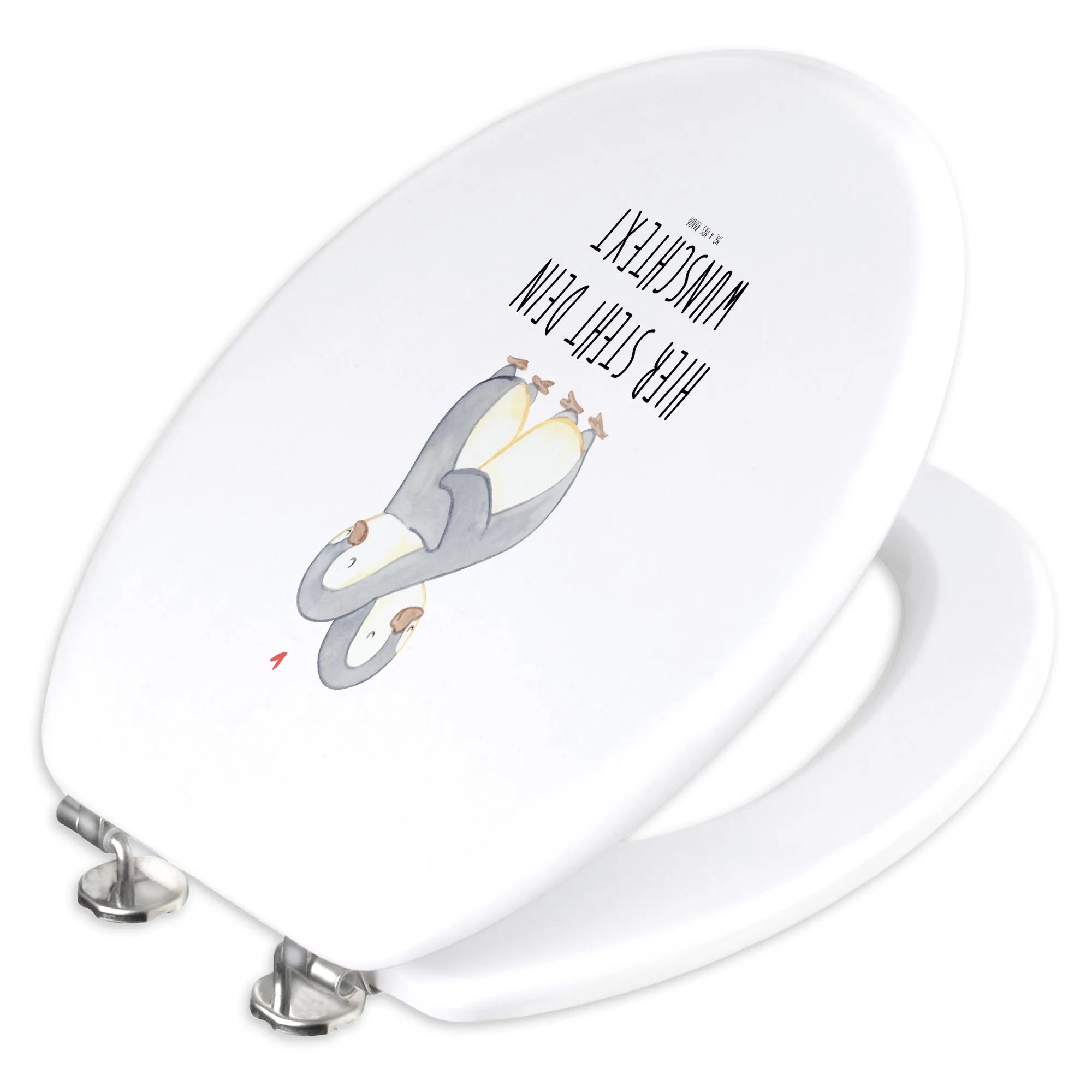 Personalized Toilet Seat Design penguins Cuddle - Hartfaser Holzkern Weiß