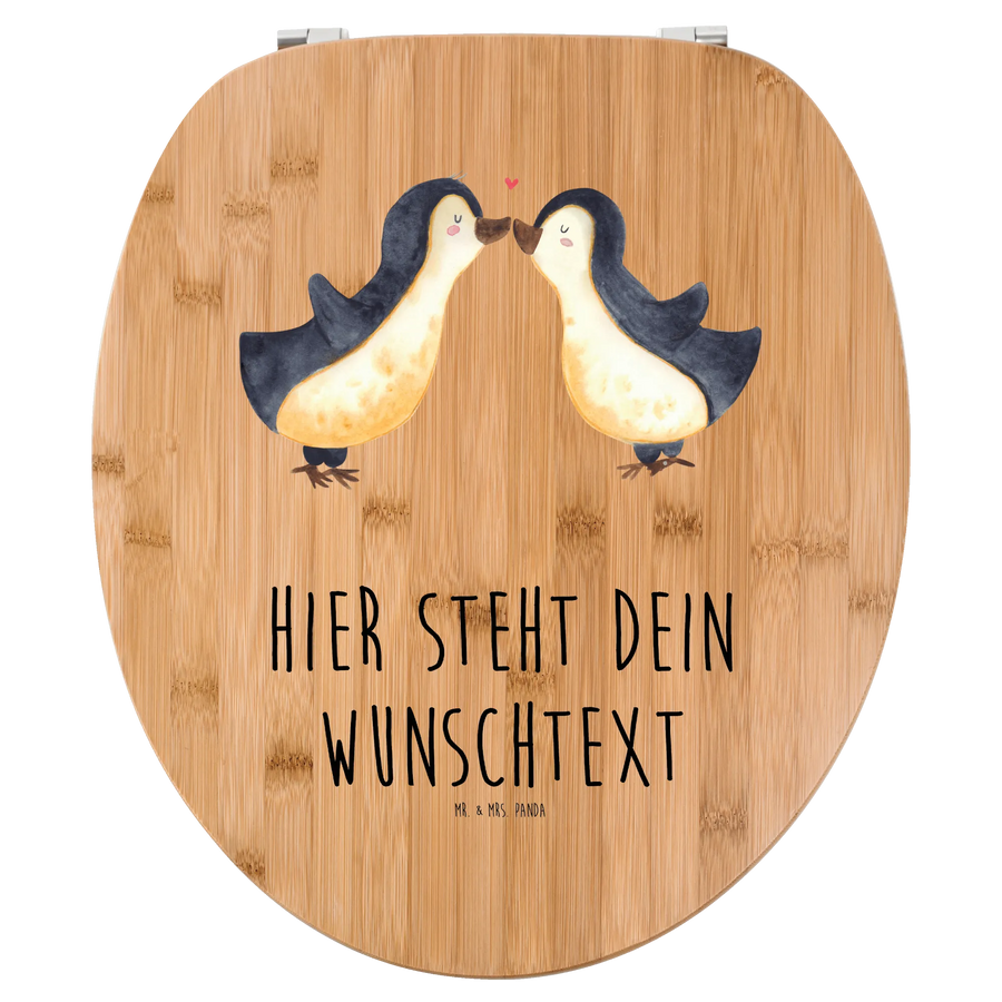 Personalized Toilet Seat Design penguins kiss - Bamboo