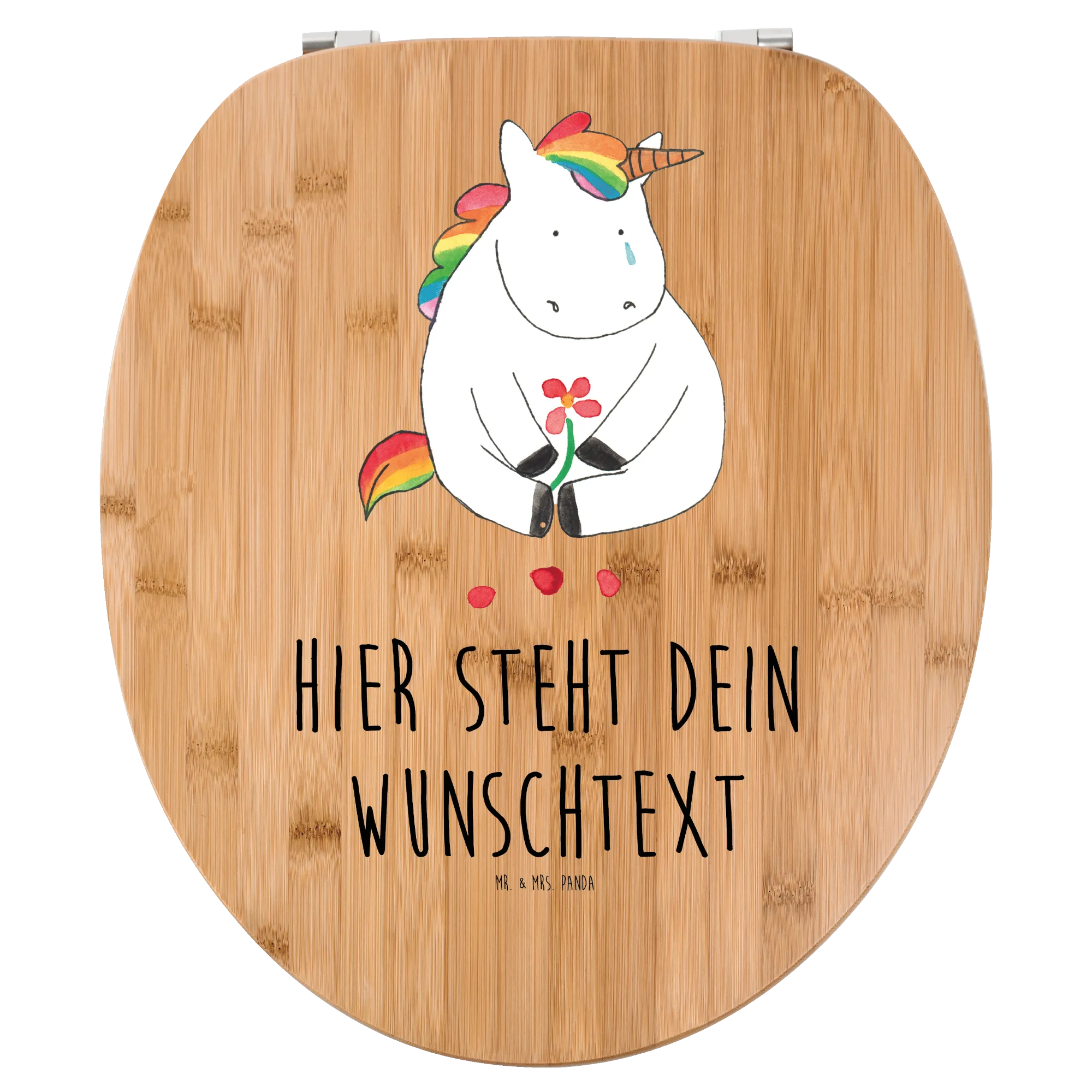 The personalized toilet lid is lovingly printed with a high-quality Mr. & Mrs. Panda design, created by Mrs. Panda to bring more joy into your bathroom.