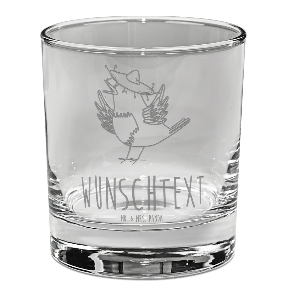 Personalized Whiskey Glass Crow sombrero small animals, cute, funny, cute animal motives, hand drawn, small world, funny sayings, good mood, happy, gifts, gift ideas, special gifts, animal lover, card, Raven, Birds, Motivation, Magpie, Be happy, Bird, Saying positive, Happiness Saying