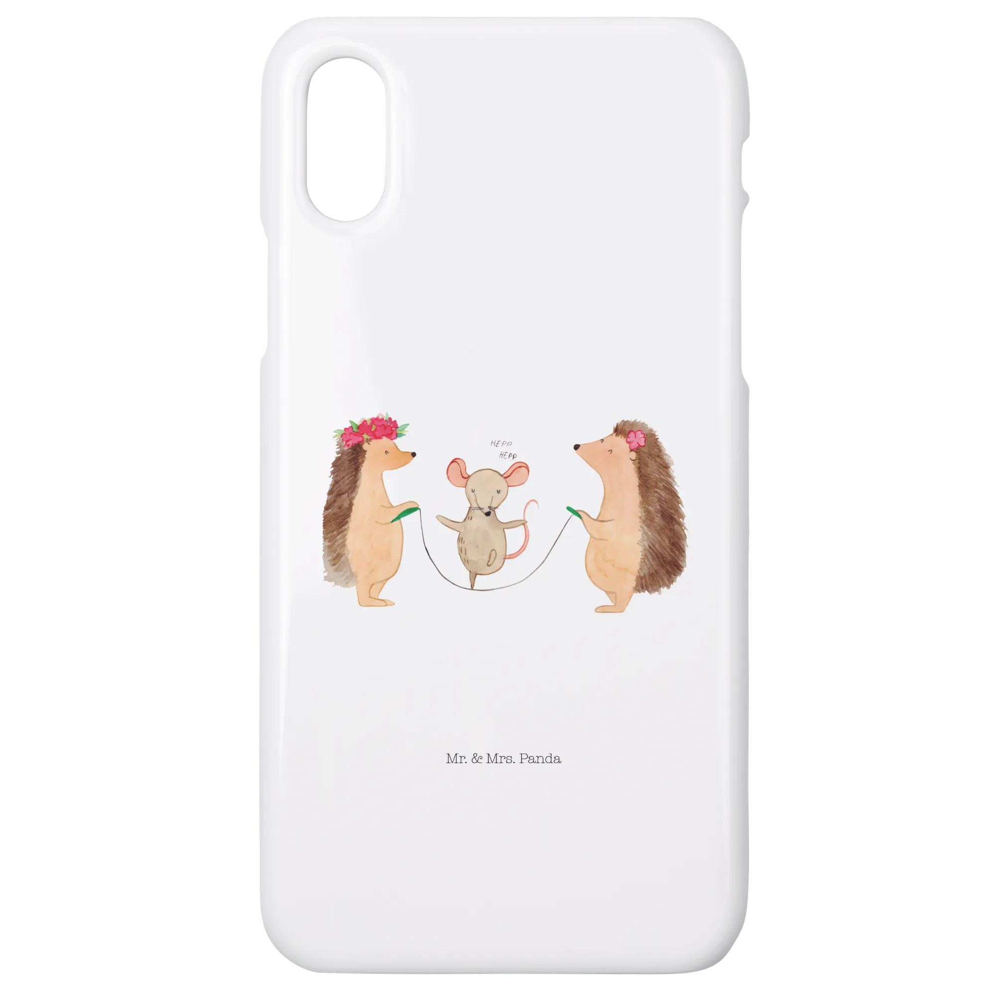 With its charming design from Mr. & Mrs. Panda’s beloved Small World collection, this mobile phone case is not just a protective cover for your iPhone X or iPhone 10, but a delightful expression of love for all things cute and whimsical. Imagine this lovely pair of hedgehogs having fun as they skip rope together, accompanied by an adorable mouse – it’s a scene that captures the joy of childhood play and togetherness.