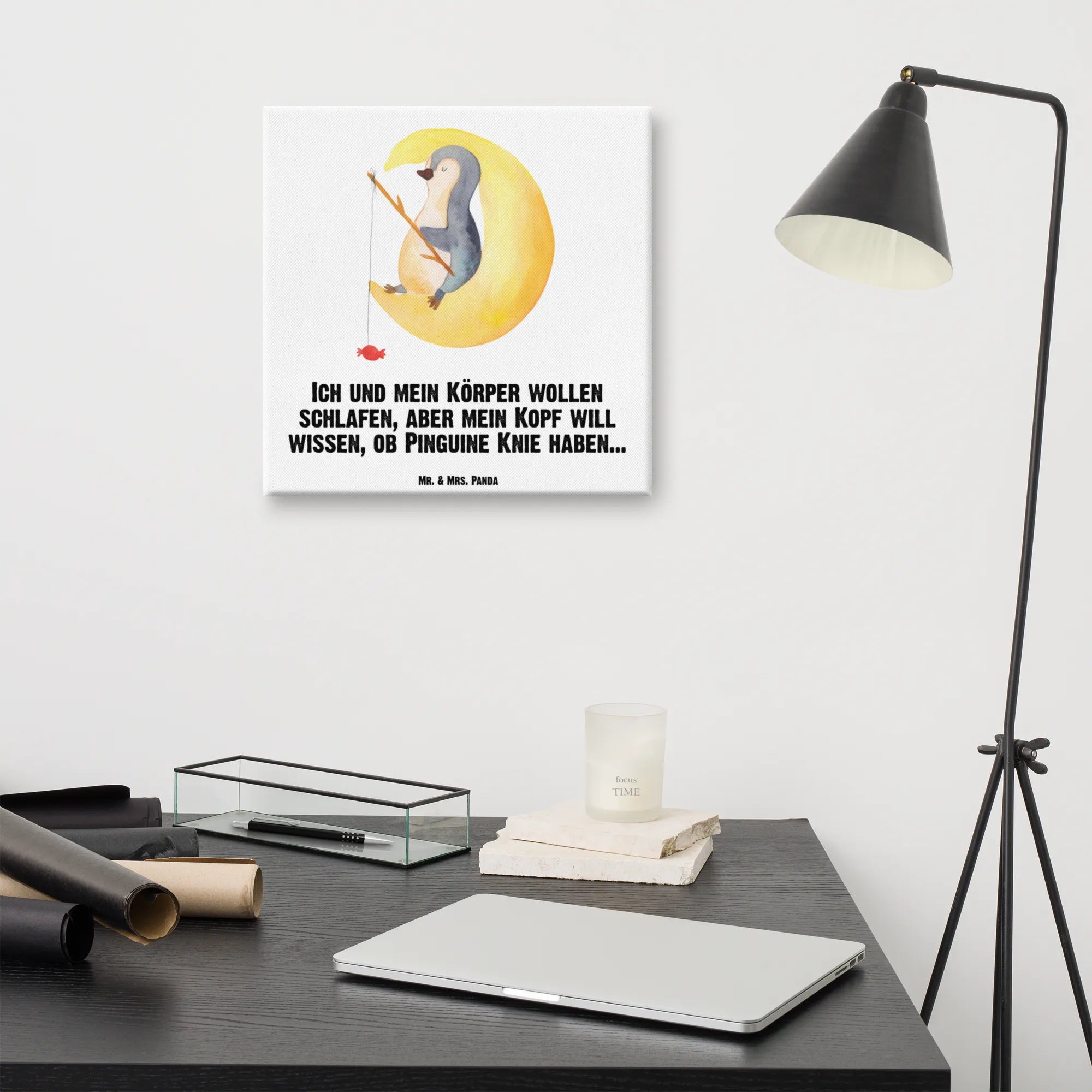 Whimsical Penguin Moon Artwork - Ideal for Relaxing Spaces