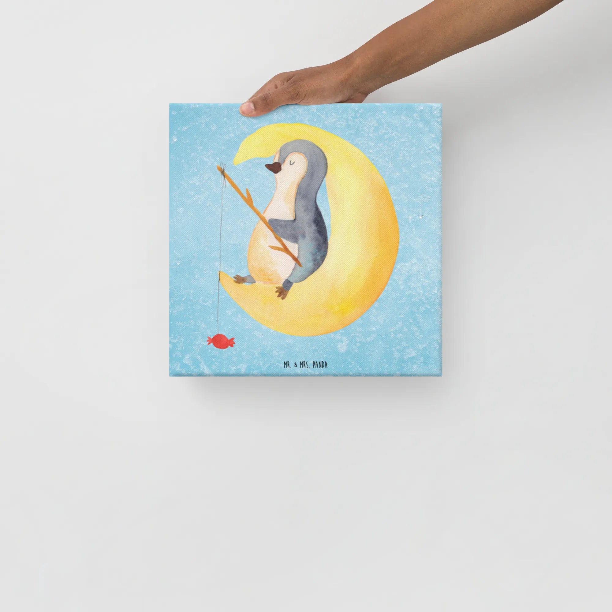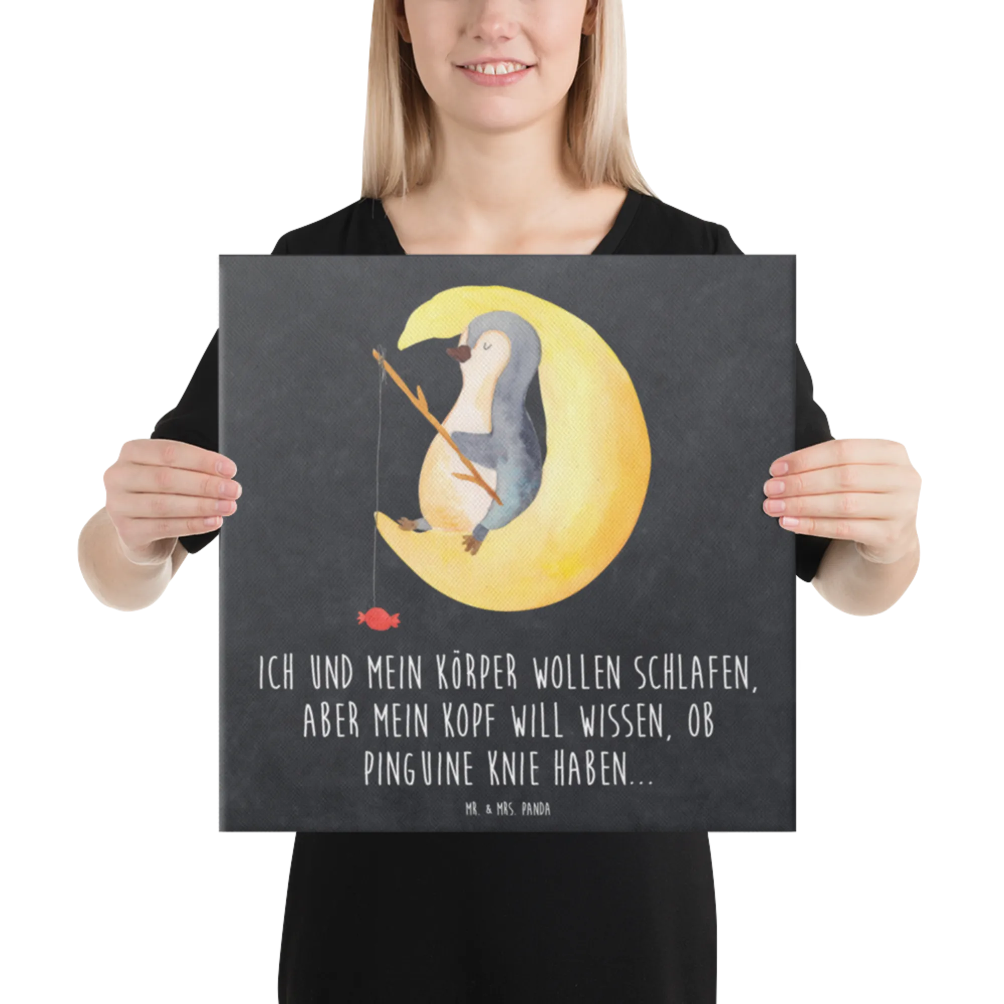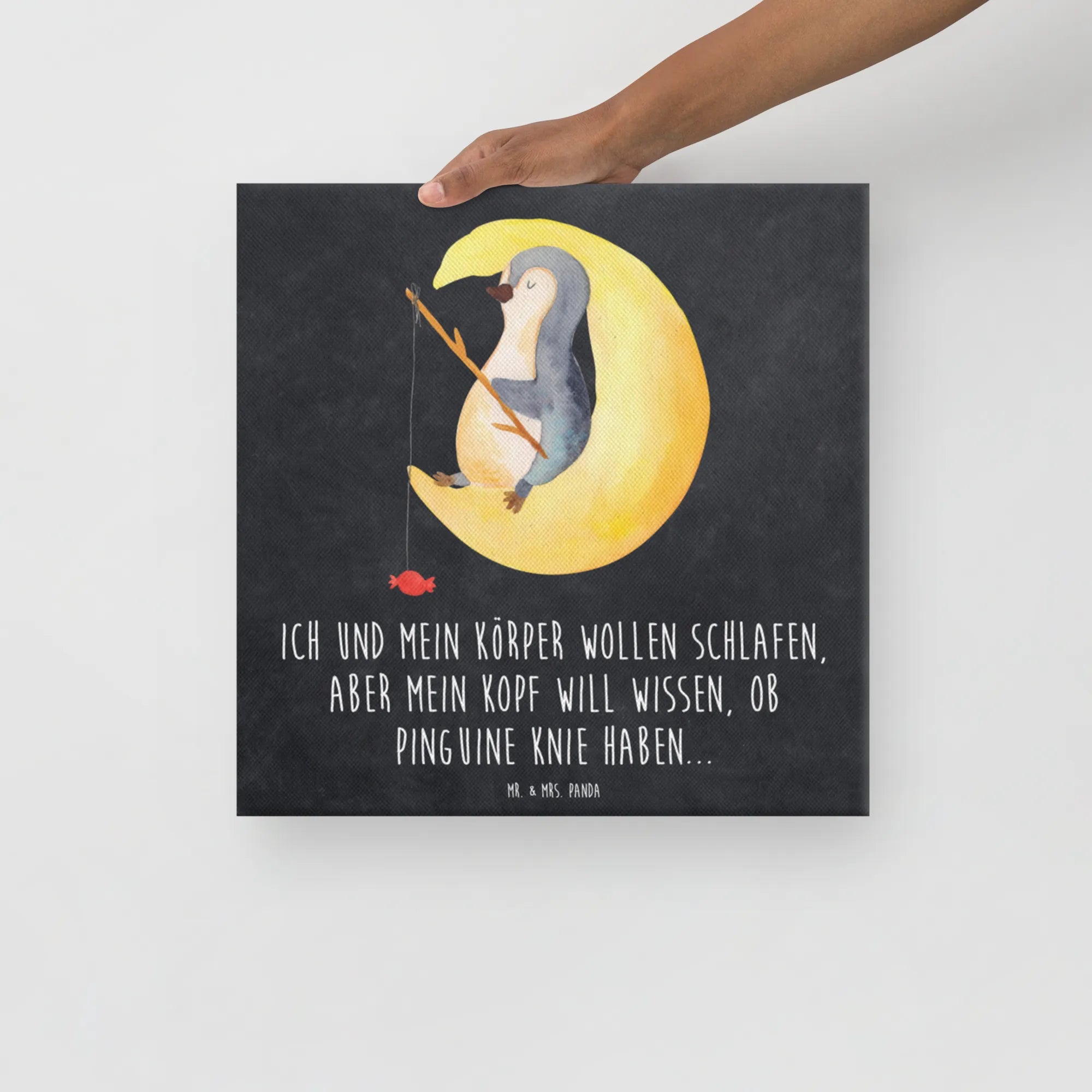Canvas picture Penguin moon - 40 x 40 cm - with saying - White