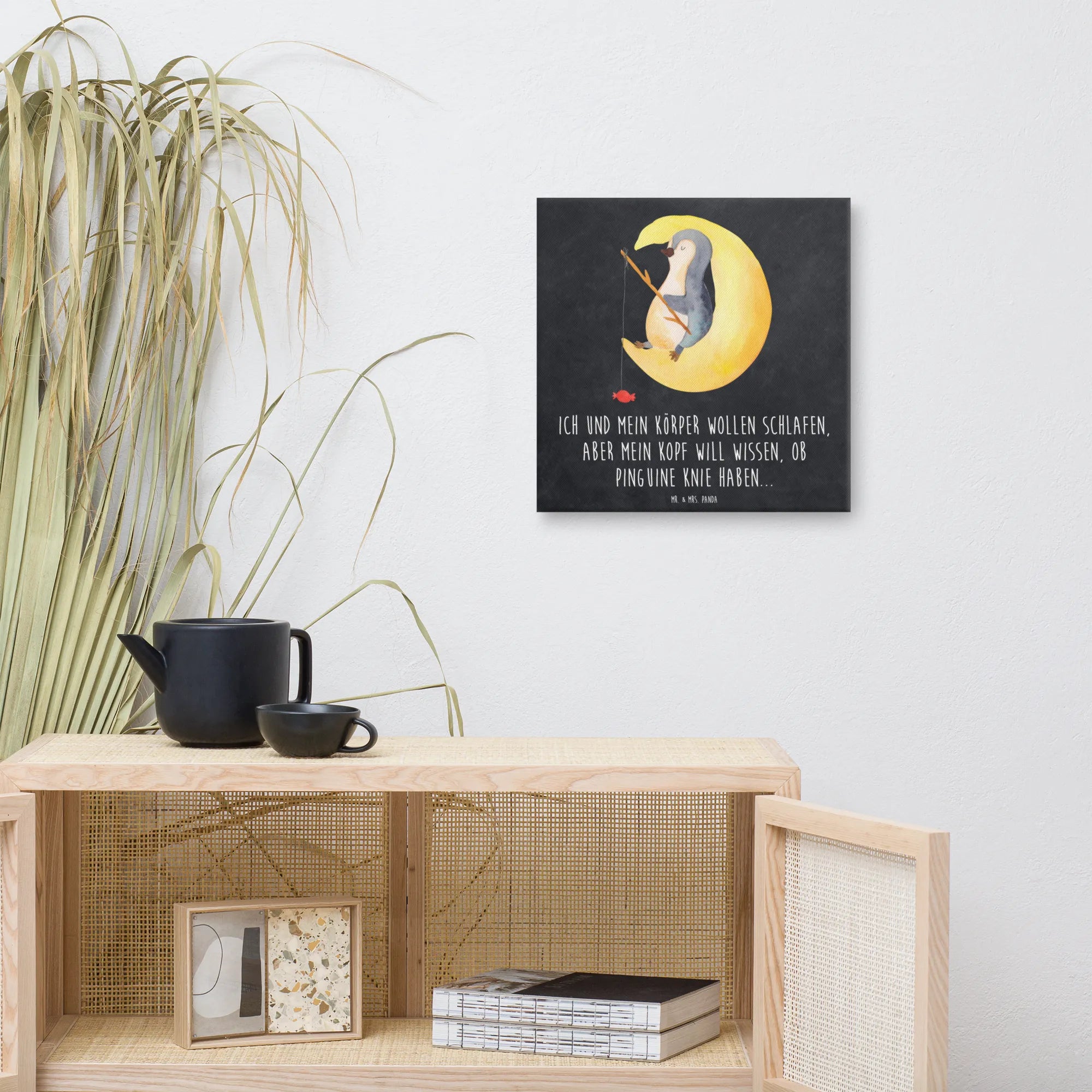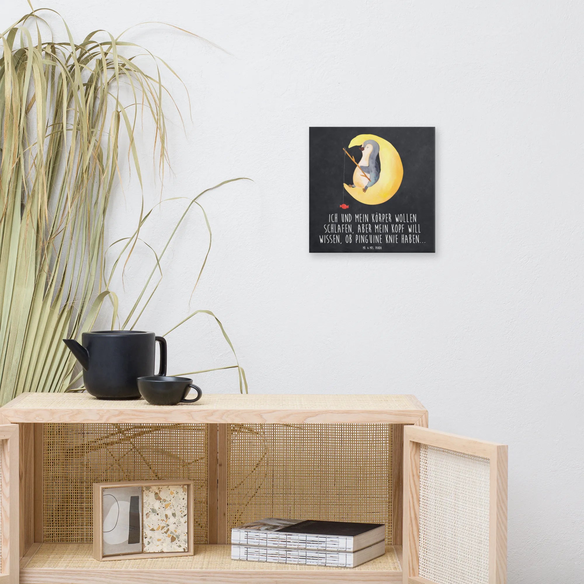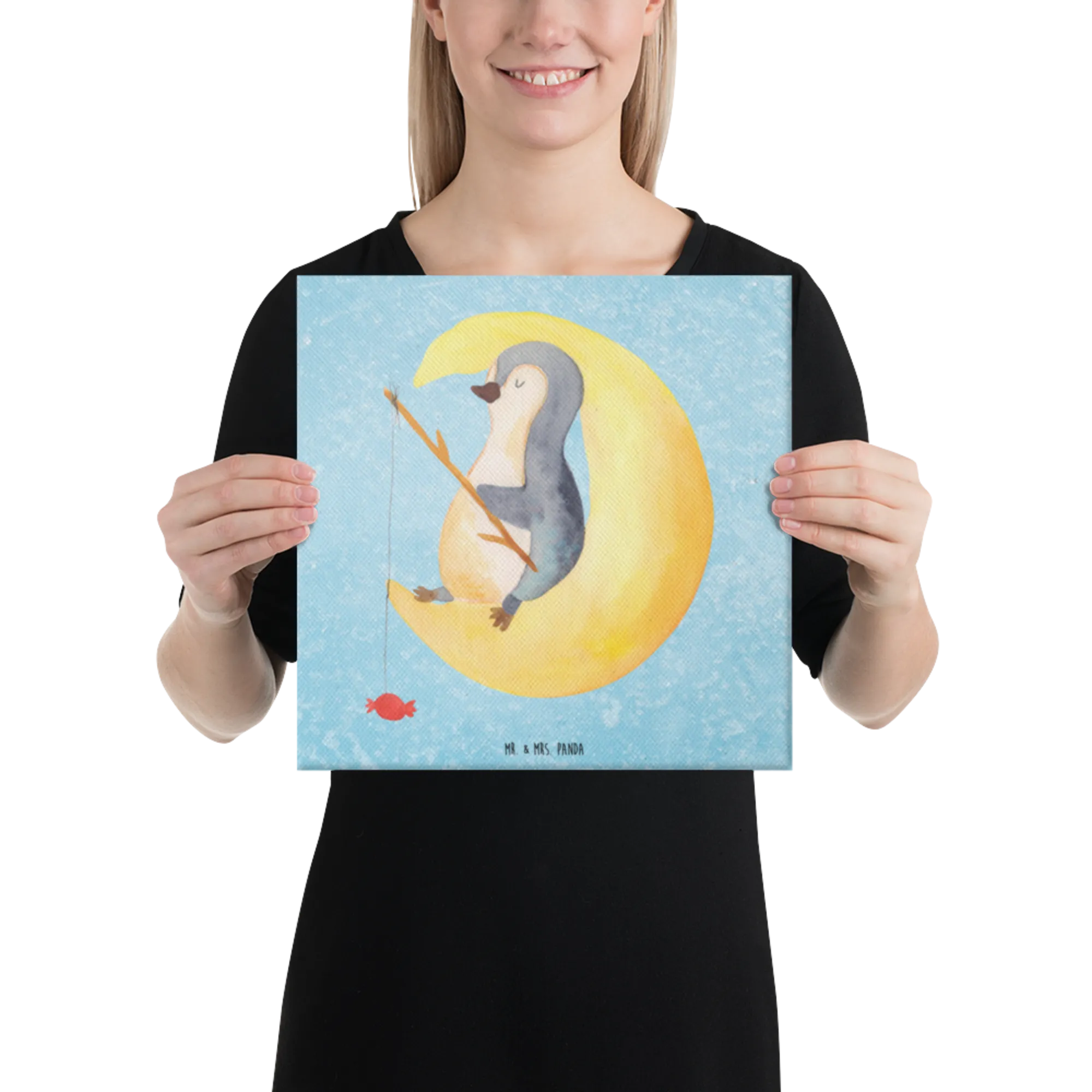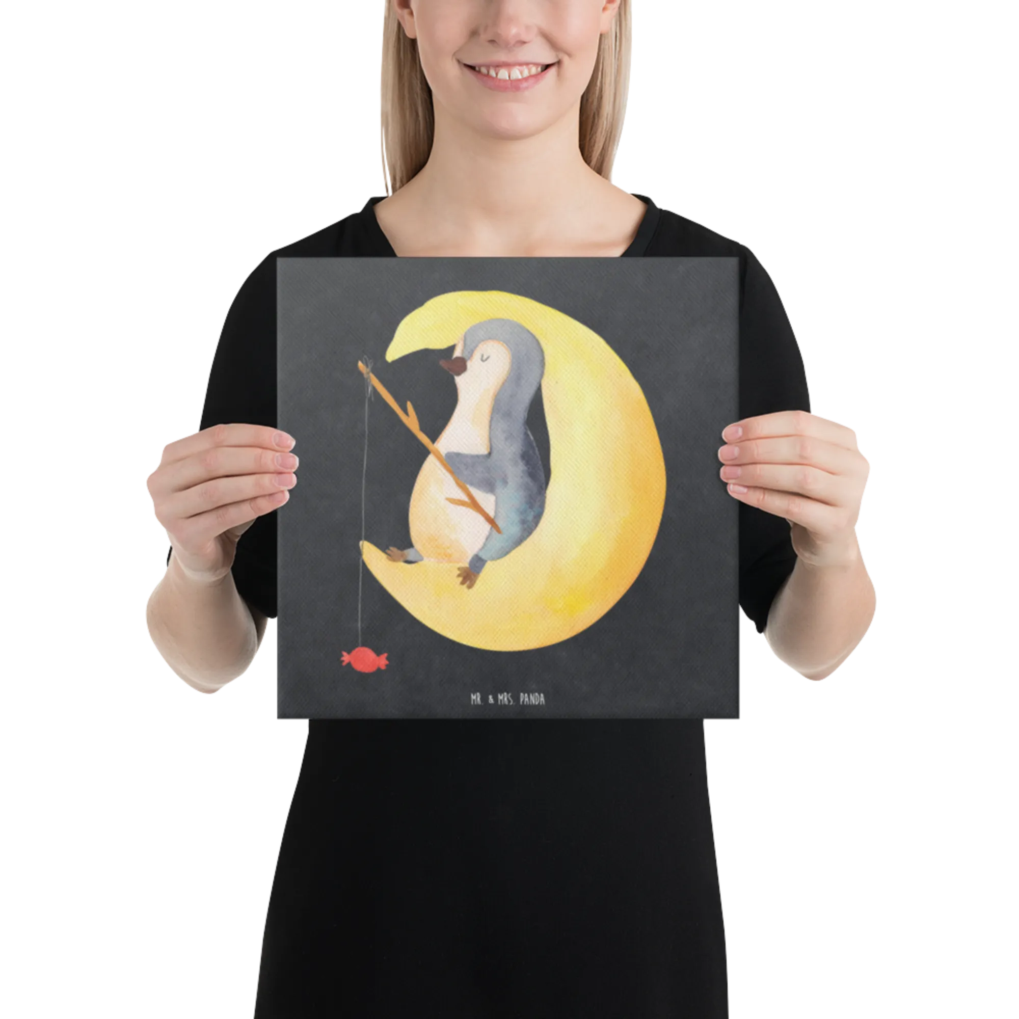 Canvas picture Penguin moon - 40 x 40 cm - with saying - White