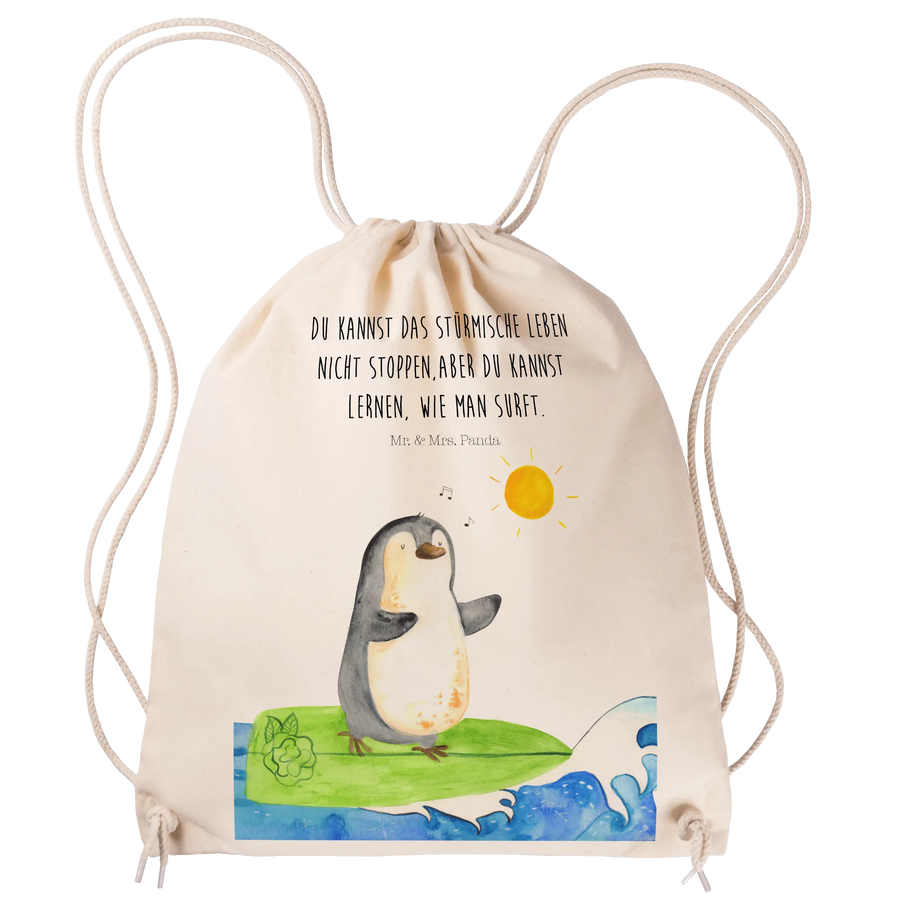 Drawstring bag Penguin surfer - with a saying - Transparent