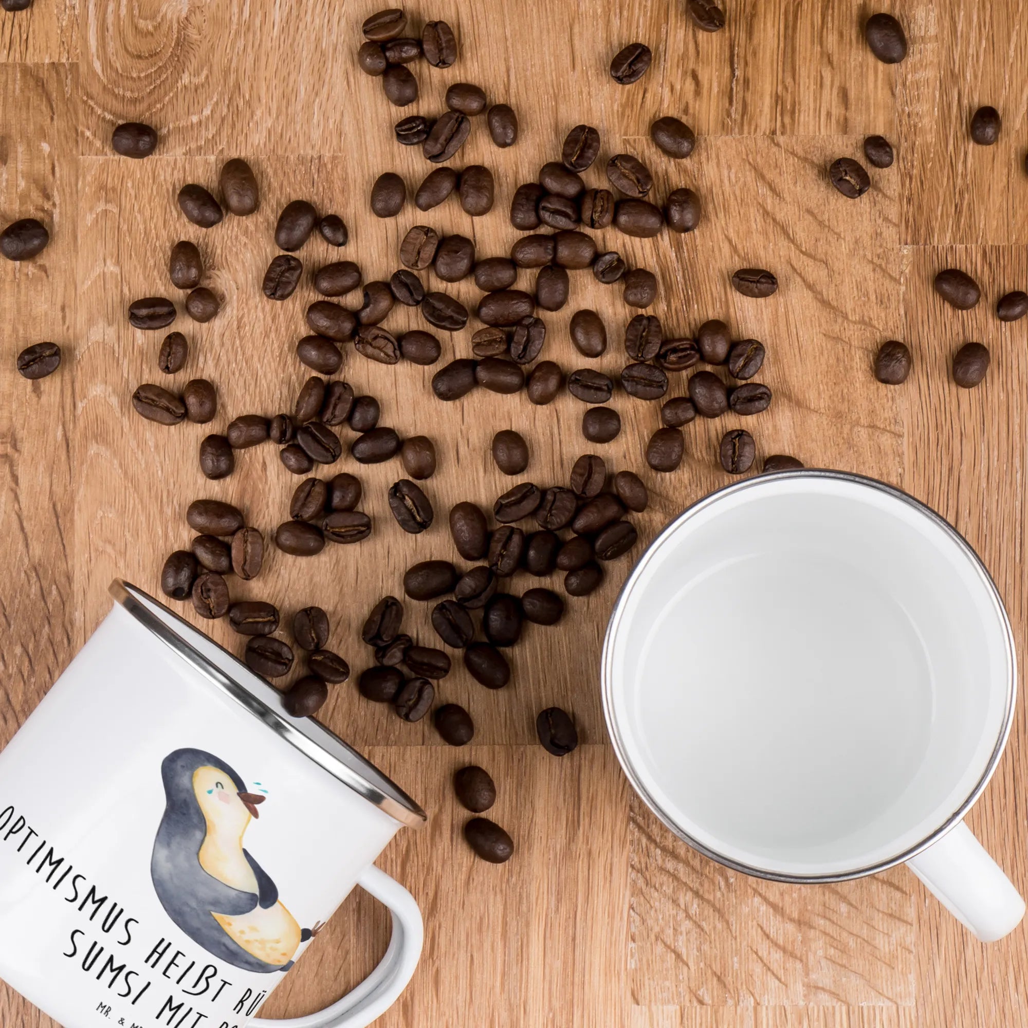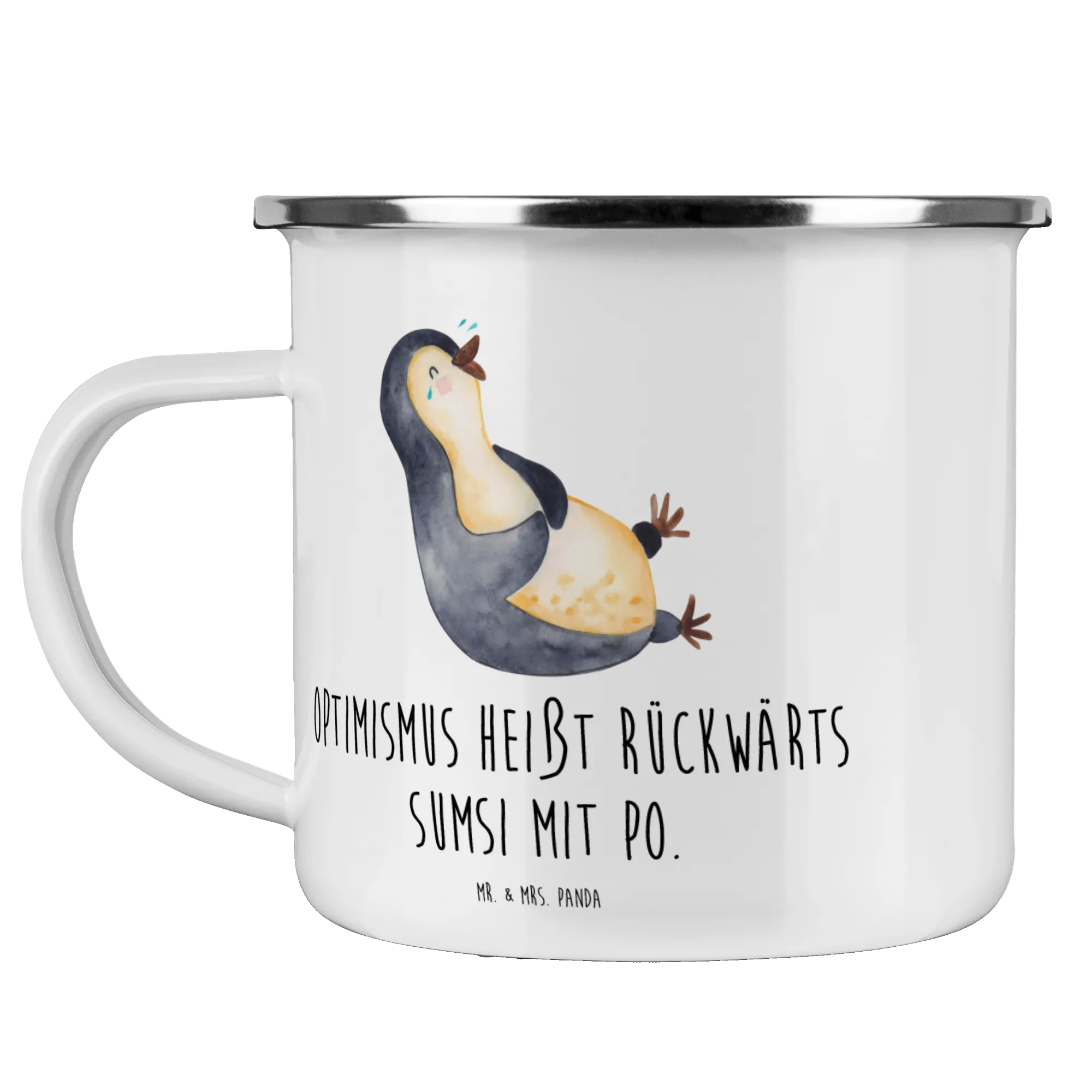 Enamel camping mug Penguin Laugh - with a saying - Weiß