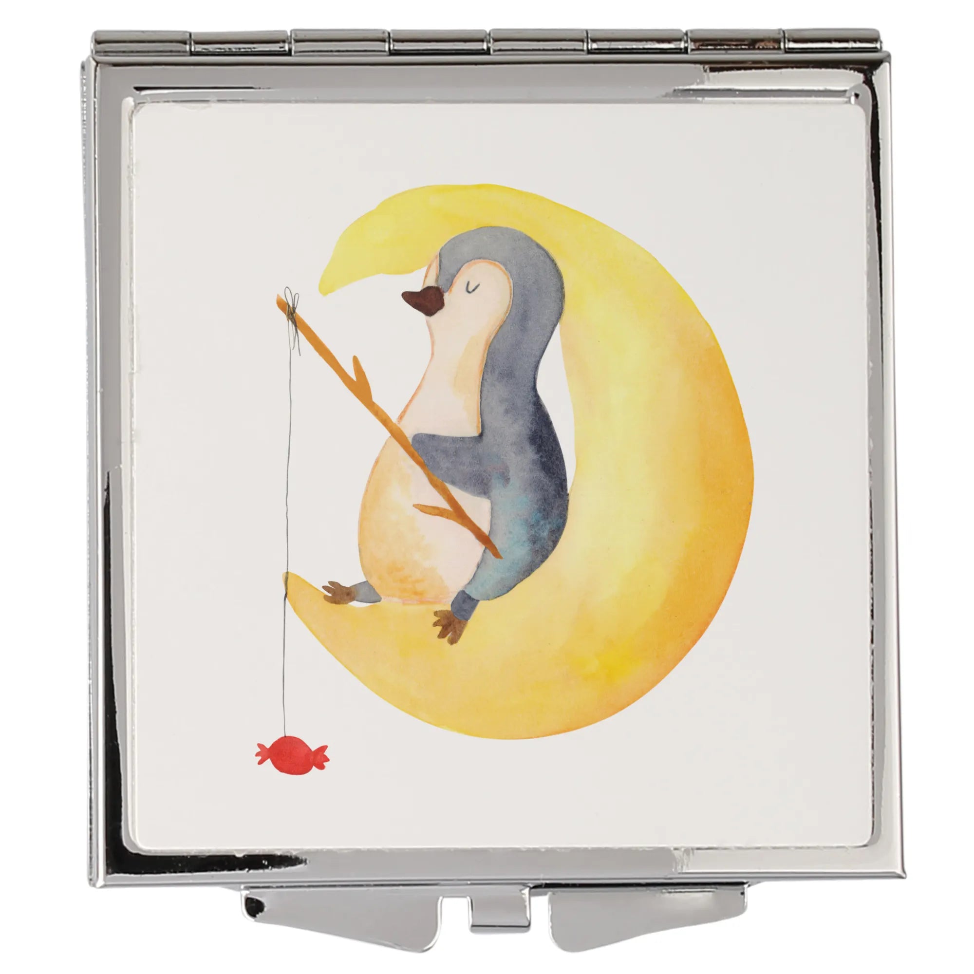 Handbag mirror Penguin moon - with saying - White