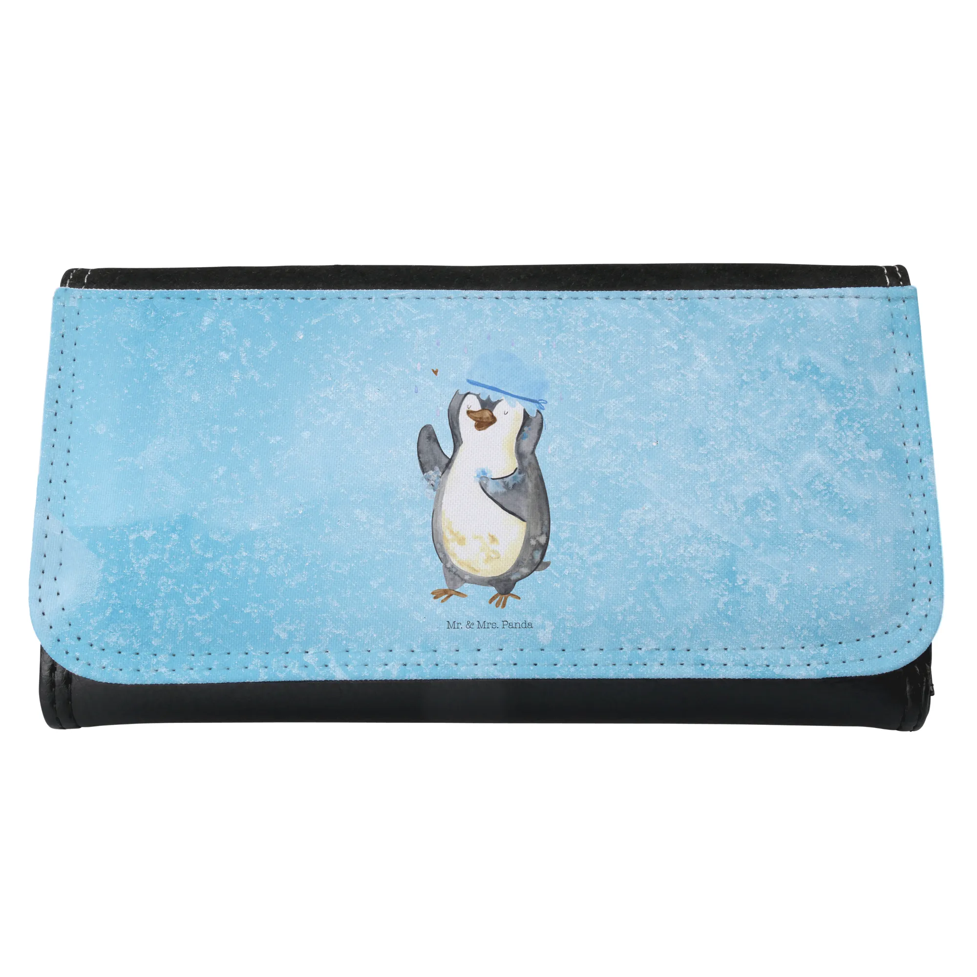 Ladies purse Penguin have a shower - with saying - Ice Blue