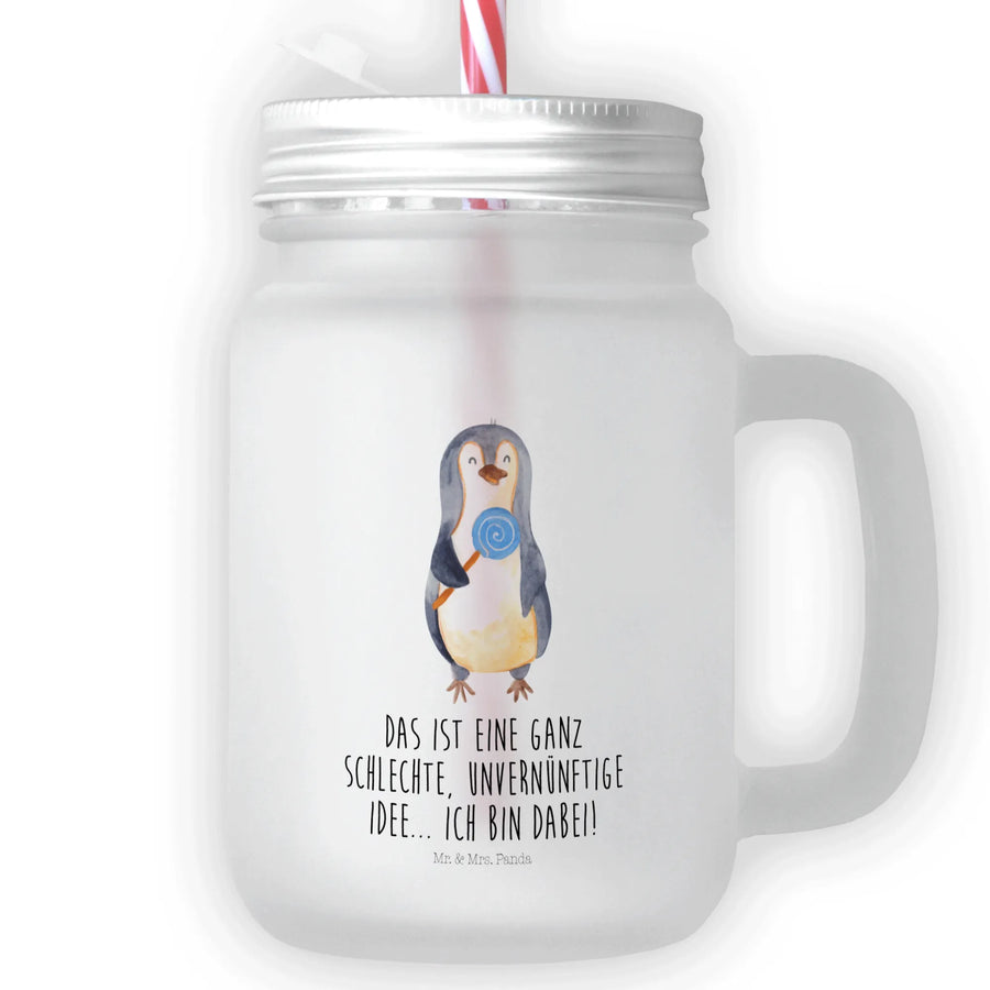Mason jar drinking glass Penguin lollipop cocktail glass, glass, drinking glass, preserving glass, summer glass, Mason Jar, handle glass, Penguin, North Pole, Winter, Penguins, rebel, bullshit, lollipop, hoodlum, crook, slogan, penguins, candy