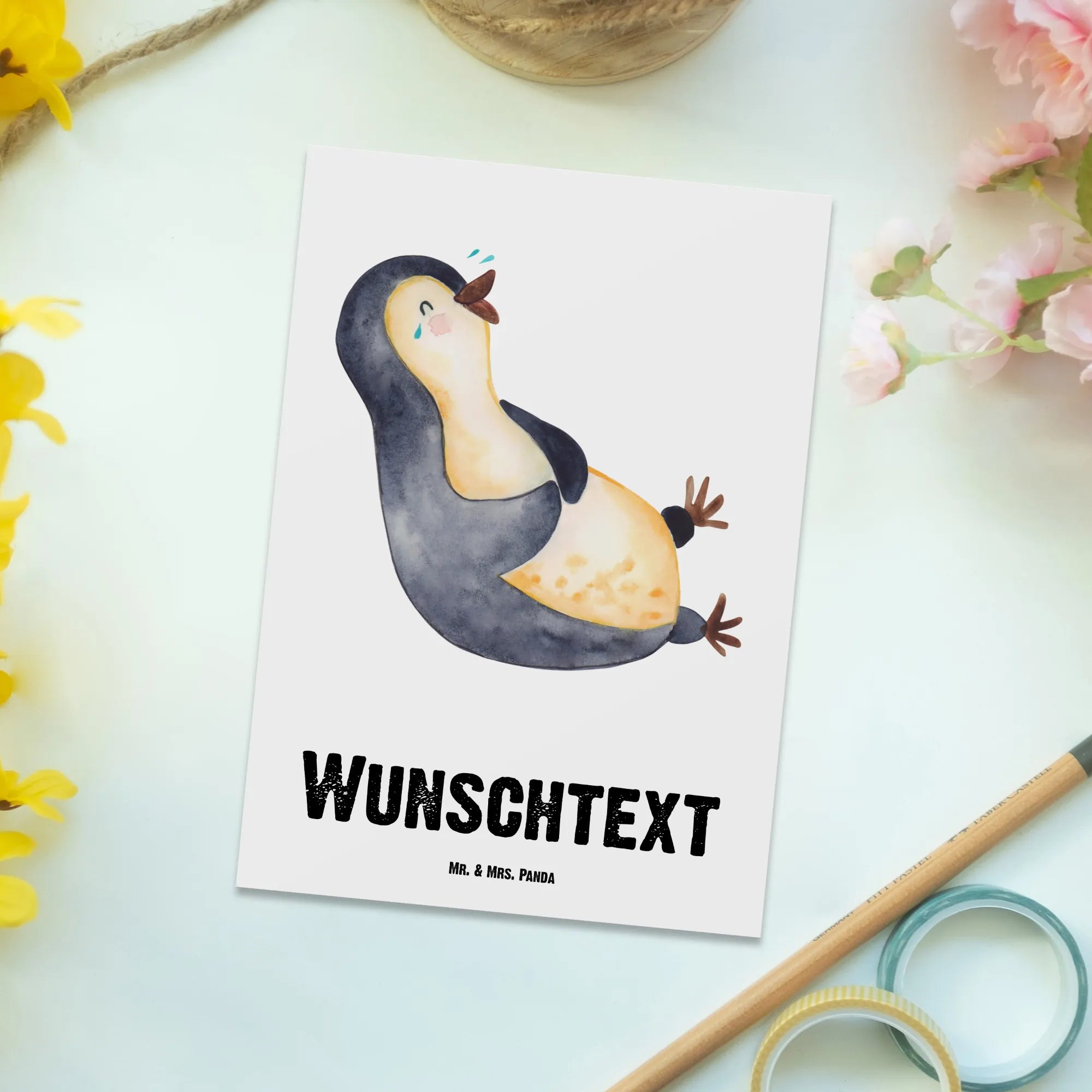Personalised postcard Penguin Laugh – Mr. & Mrs. Panda