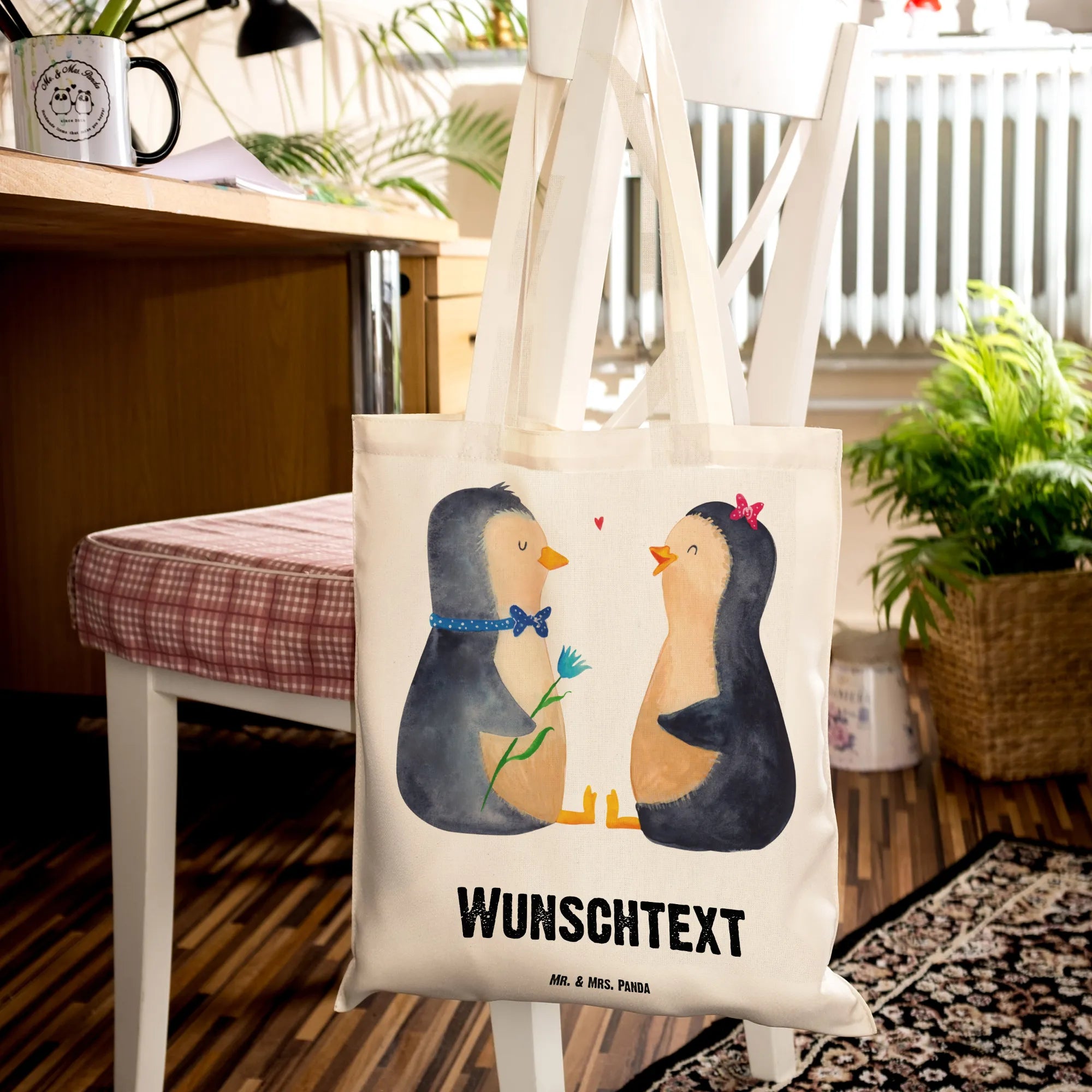 Personalised tote bag Penguin pair - Transparent