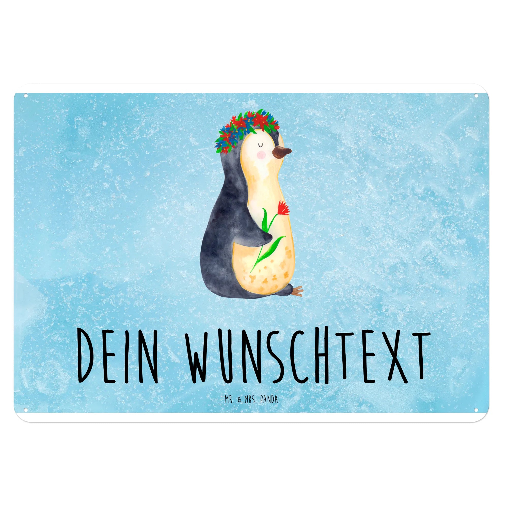 Personalisiertes Blechschild Pinguin Blumenkranz – Mr. & Mrs. Panda
