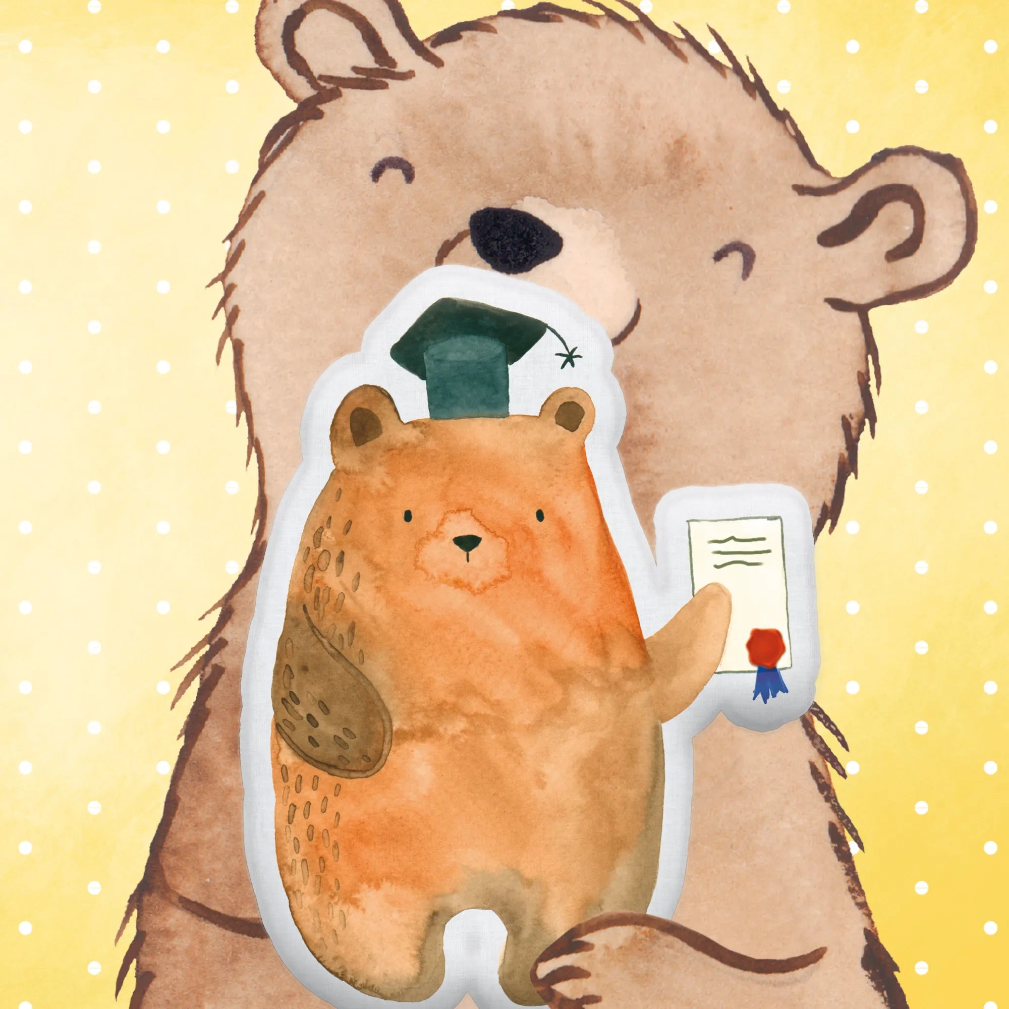 Der Prüfungsbär erinnert dich oder den Beschenkten daran, wie viele Mühen und Anstrengungen in den erfolgreichen Abschluss geflossen sind. Mit einem besonderen Augenmerk auf die Details gibt es kein besseres Kuscheltier, um diesen besonderen Moment zu feiern. Das Kissen hat eine superfluffige Mikrofaserfüllung, die sich wunderbar anfühlt und einfach zum Kuscheln einlädt. Es ist als 45 cm x 45 cm großes Kissen erhältlich und handgenäht, was jedes Exemplar zu einem Unikat macht. Die liebevoll designten Motive von Mr. & Mrs. Panda sind auch ideal, um ein Lächeln auf das Gesicht eines Freundes oder Familienmitglieds zu zaubern.
