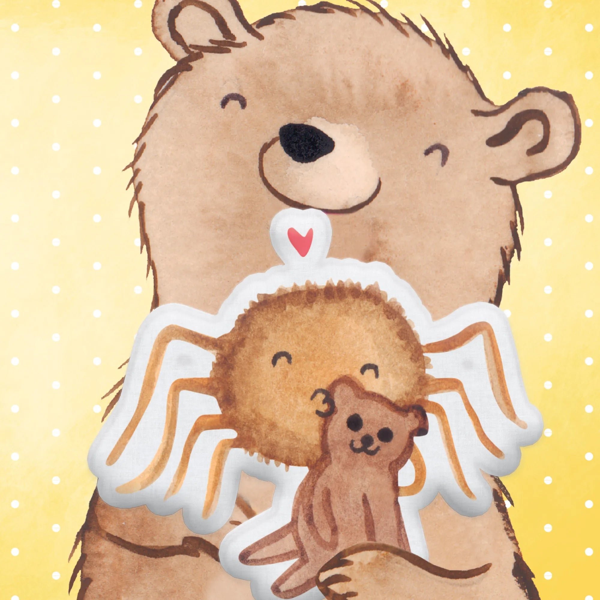 In the enchanting world of Agathe, our sweet spider is caught in a moment of pure affection as she holds her teddy bear tight. Her charming expression, along with the little heart floating nearby, captures the magic of love and friendship. This motif is a whimsical reminder that the best gifts don't always come wrapped in fancy paper; sometimes, they arrive as simple symbols of companionship. Perfect for anyone who's ever found joy in the company of their friends, Agathe represents unwavering support and love. This is an ideal present for those heartwarming occasions when you want to show appreciation for those who make your life truly wonderful. Let Agathe inspire you to cherish those heartfelt connections and remind your loved ones how much they mean to you. Life’s sweetest moments are often wrapped in simple joys and laughter shared among friends.