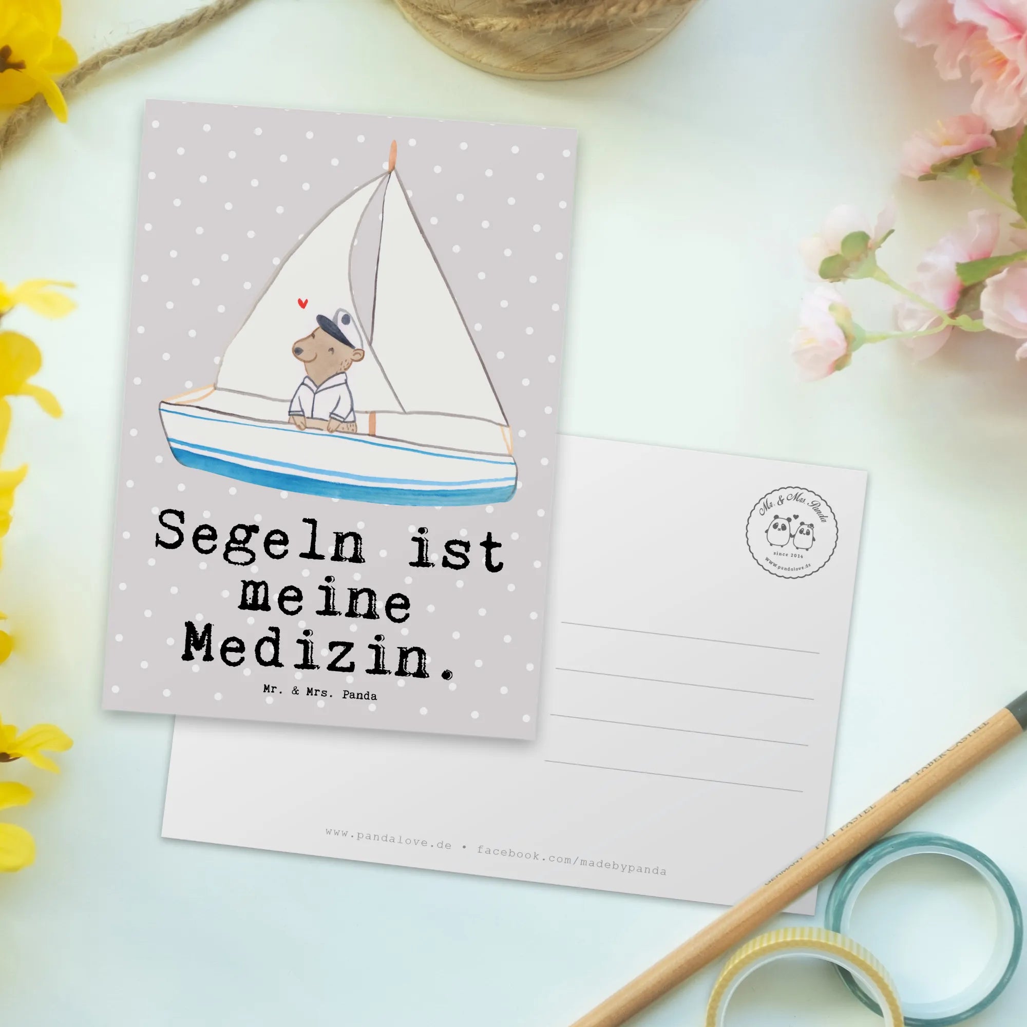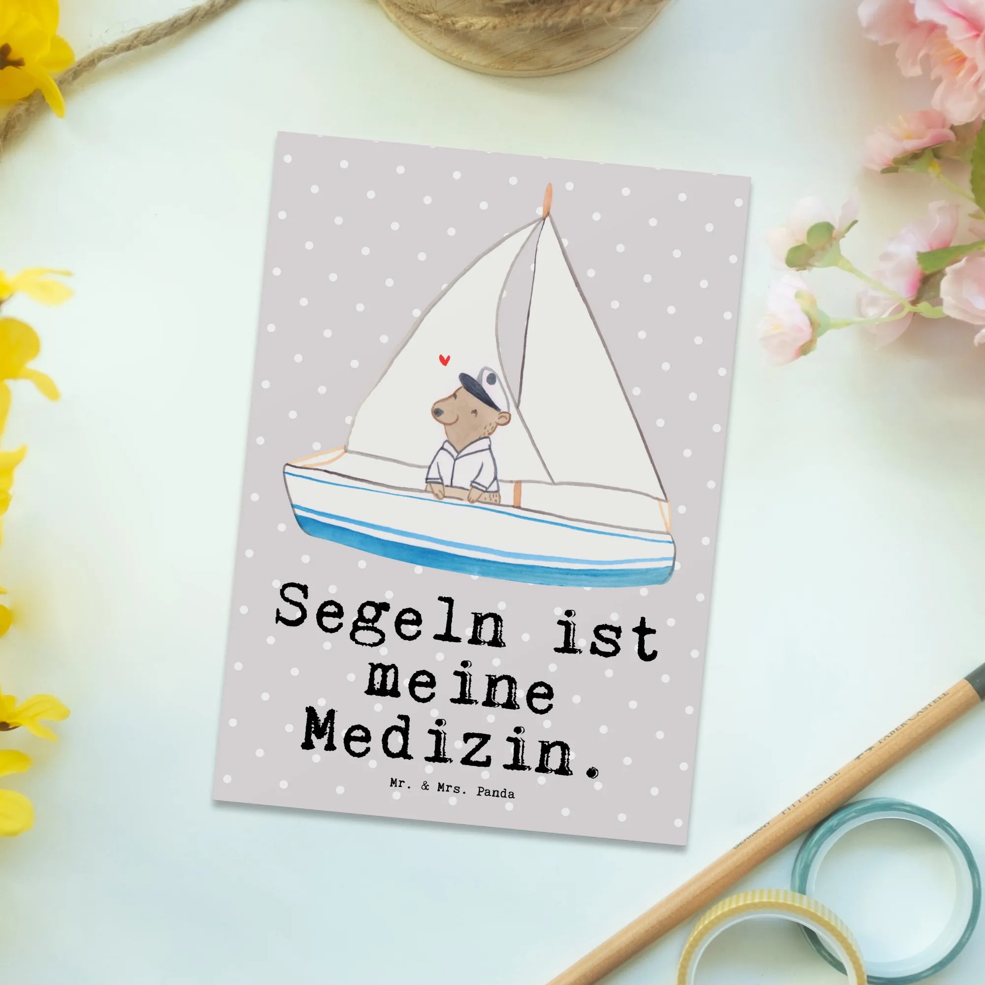 Postcard bear Sail - Pastel Gray
