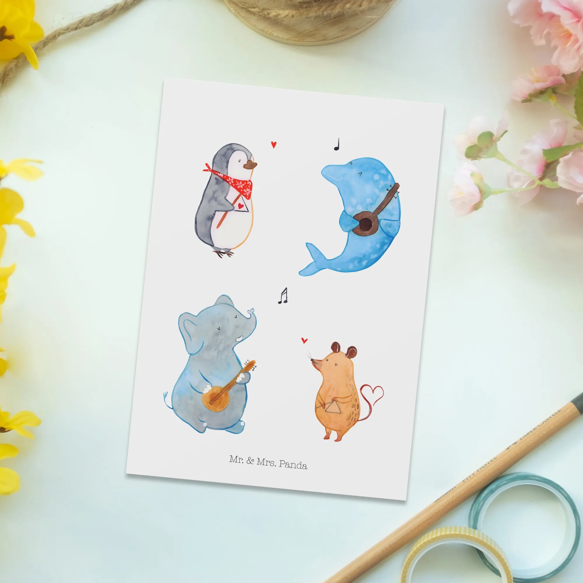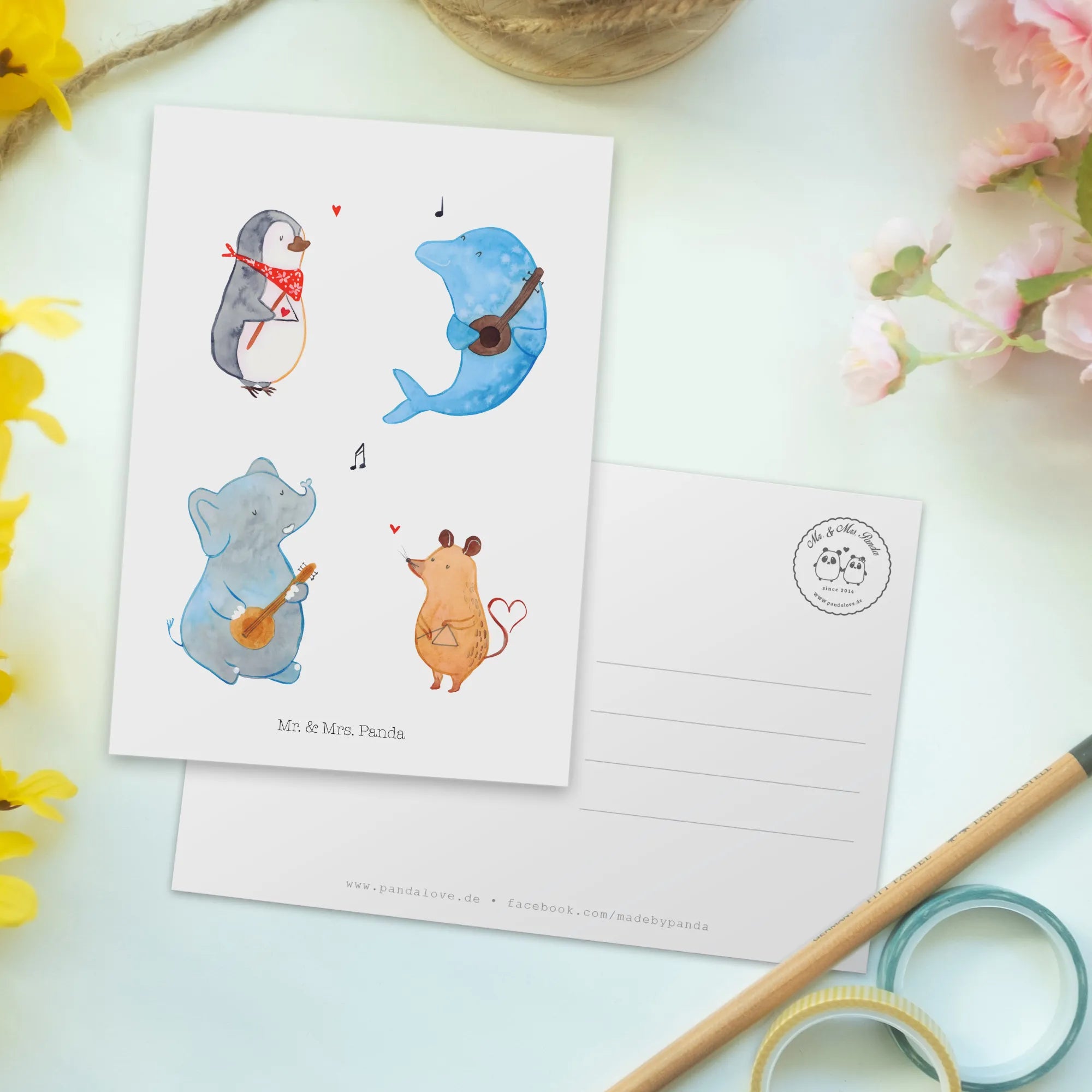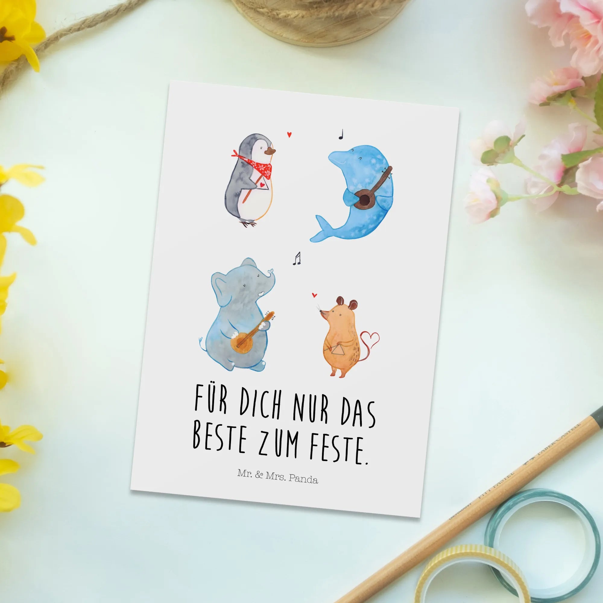 Postcard Big tape Dankeskarte, Einladung, Ansichtskarte, Einladungskarten Geburtstag, Karte, Grußkarte, Geburtstagskarte, Ansichtskarten, Einladung Geburtstag, Geschenkkarte, Einladungskarte, Postkarte, Tiermotive, Gute Laune, lustige Sprüche, Tiere, Delfin, Maus, Musikanten, Elefant, Band, Triangel, Musik, Pinguin, Gitarre, Hund