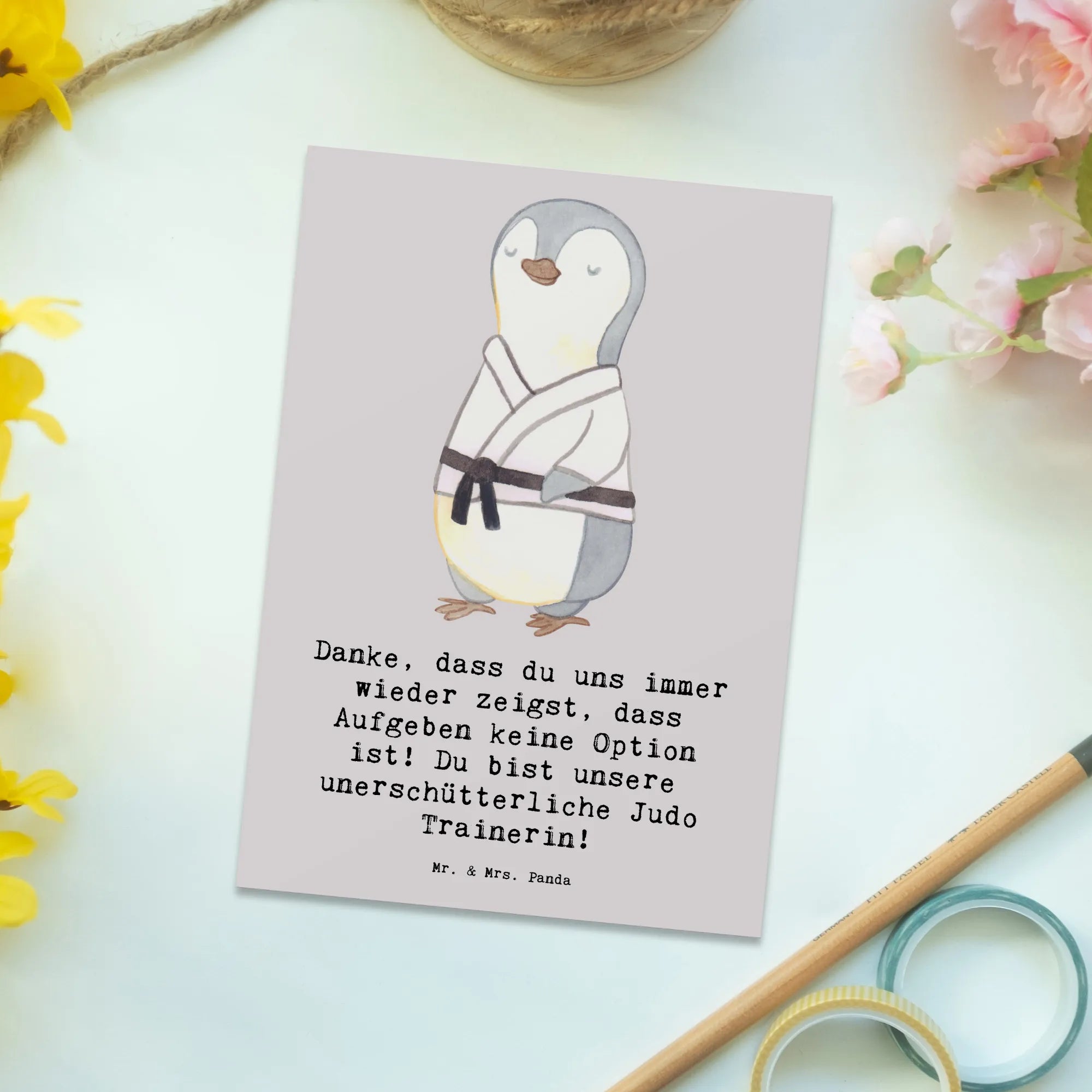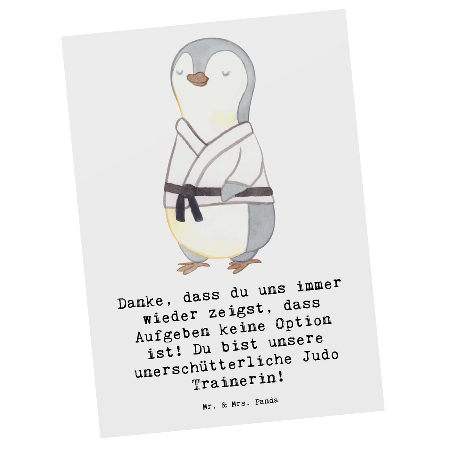 Auf der Suche nach einem besonderen Dankeschön für deine Judo-Trainerin? Diese Postkarte „Judo Trainerin“ aus der Sportarten Trainerin-Kollektion von Mr. & Mrs. Panda ist ein kleines Kunstwerk voller Wertschätzung. Mit dem liebevollen Spruch:
