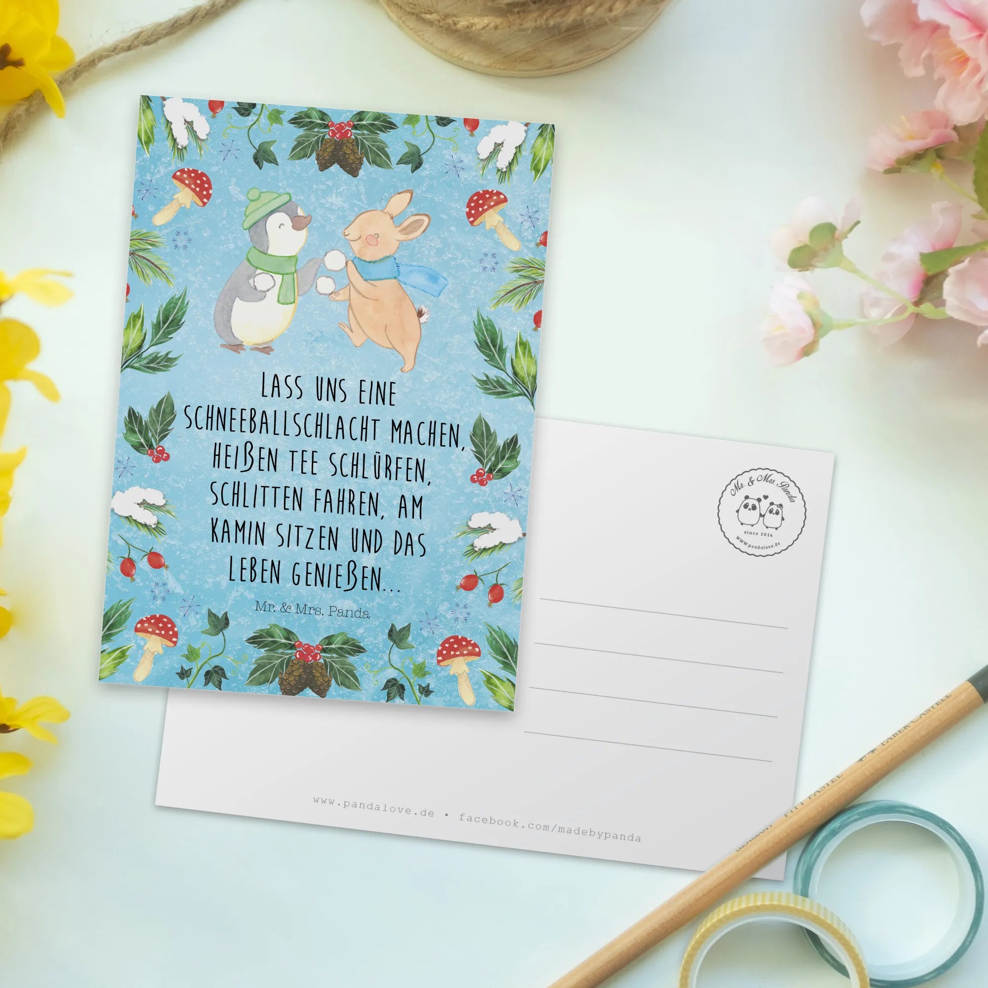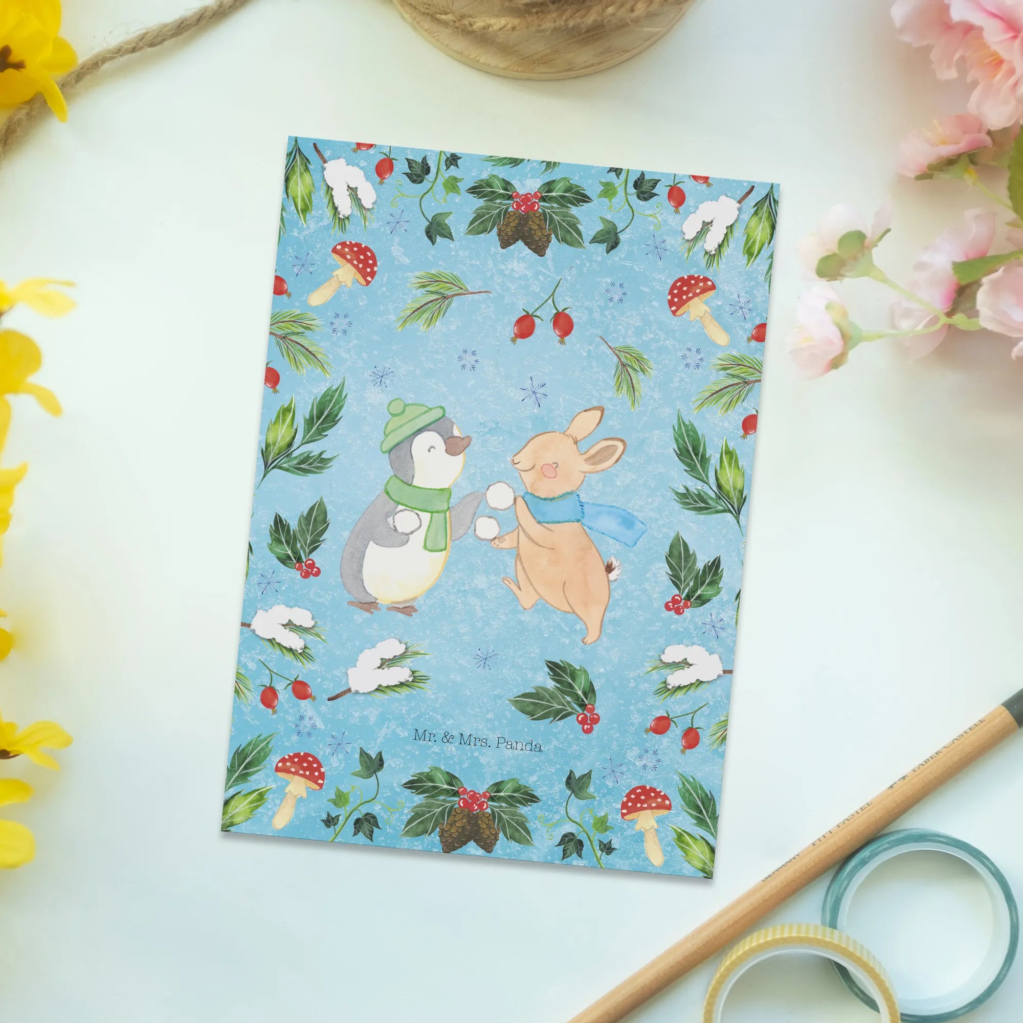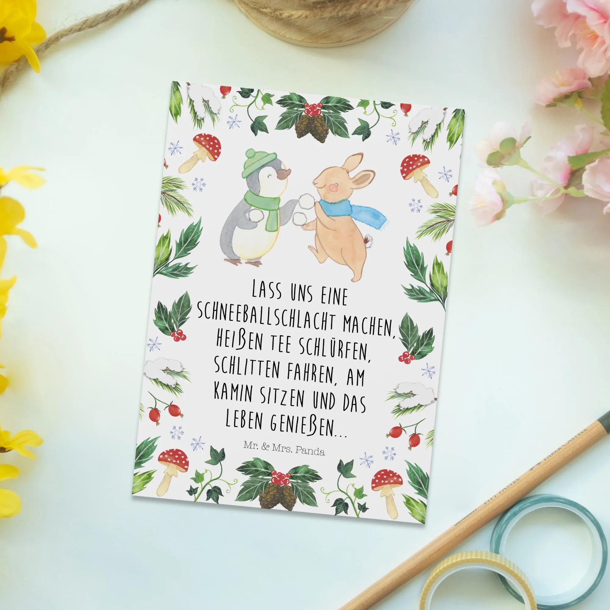 Welcome to the enchanting world of Mr. & Mrs. Panda, where every postcard is a little piece of art, waiting to be shared! Our delightful Postcard featuring a Penguin and Rabbit having a snowball fight is the perfect way to spread joy during the magical Winter season. Imagine the laughter and happiness as friends and family receive this charming postcard, beautifully adorned with hand-drawn illustrations that warm the heart.