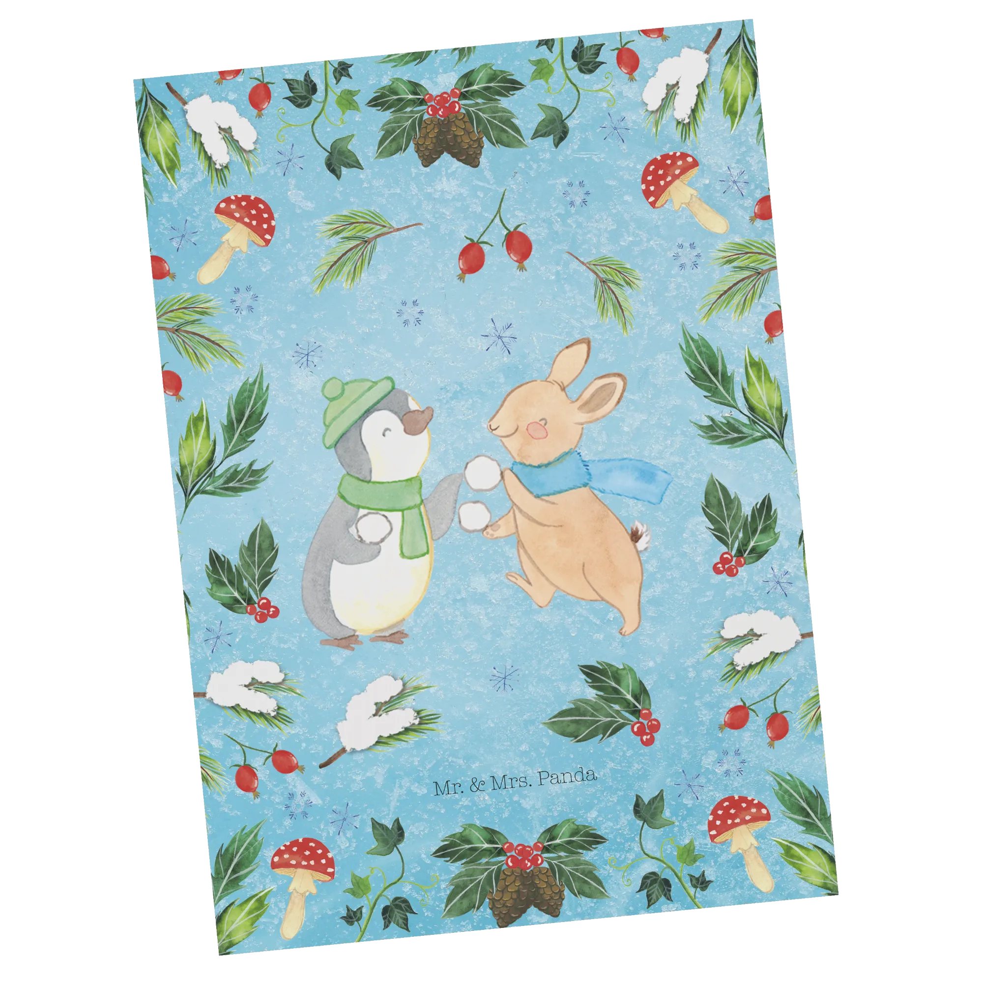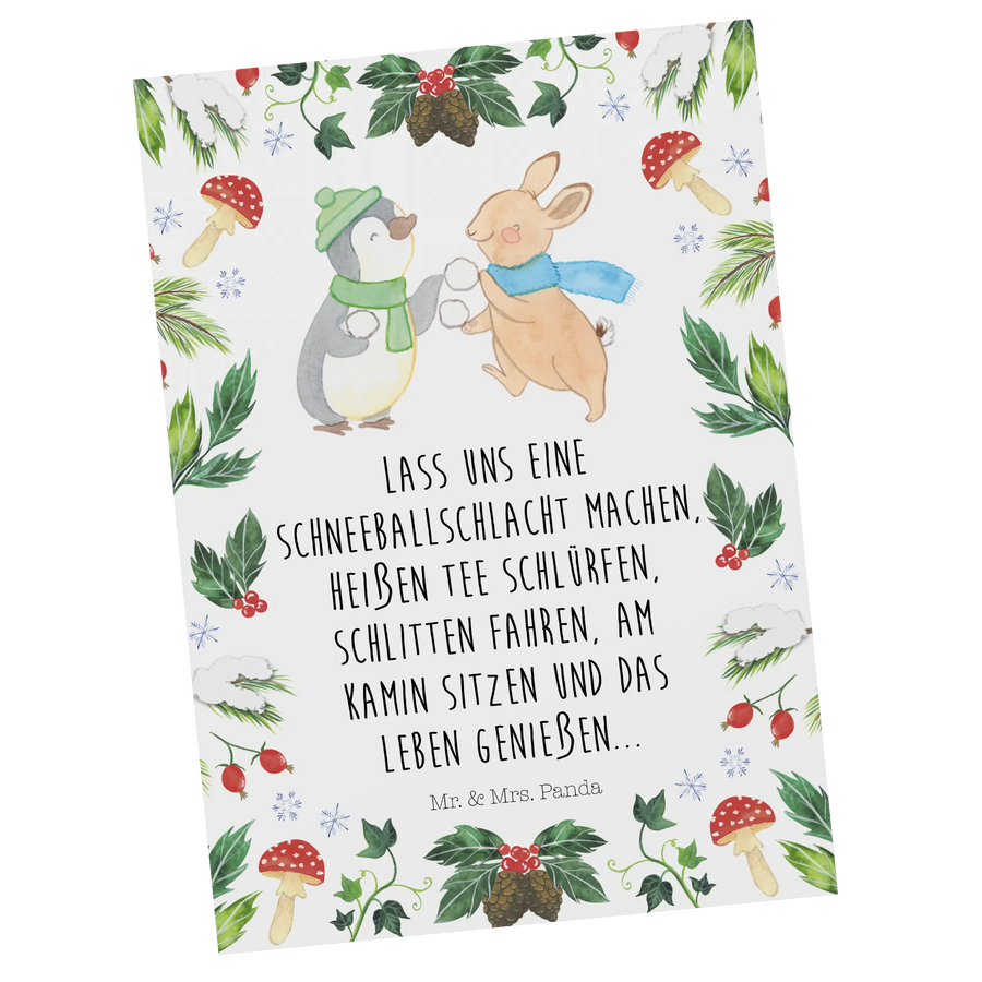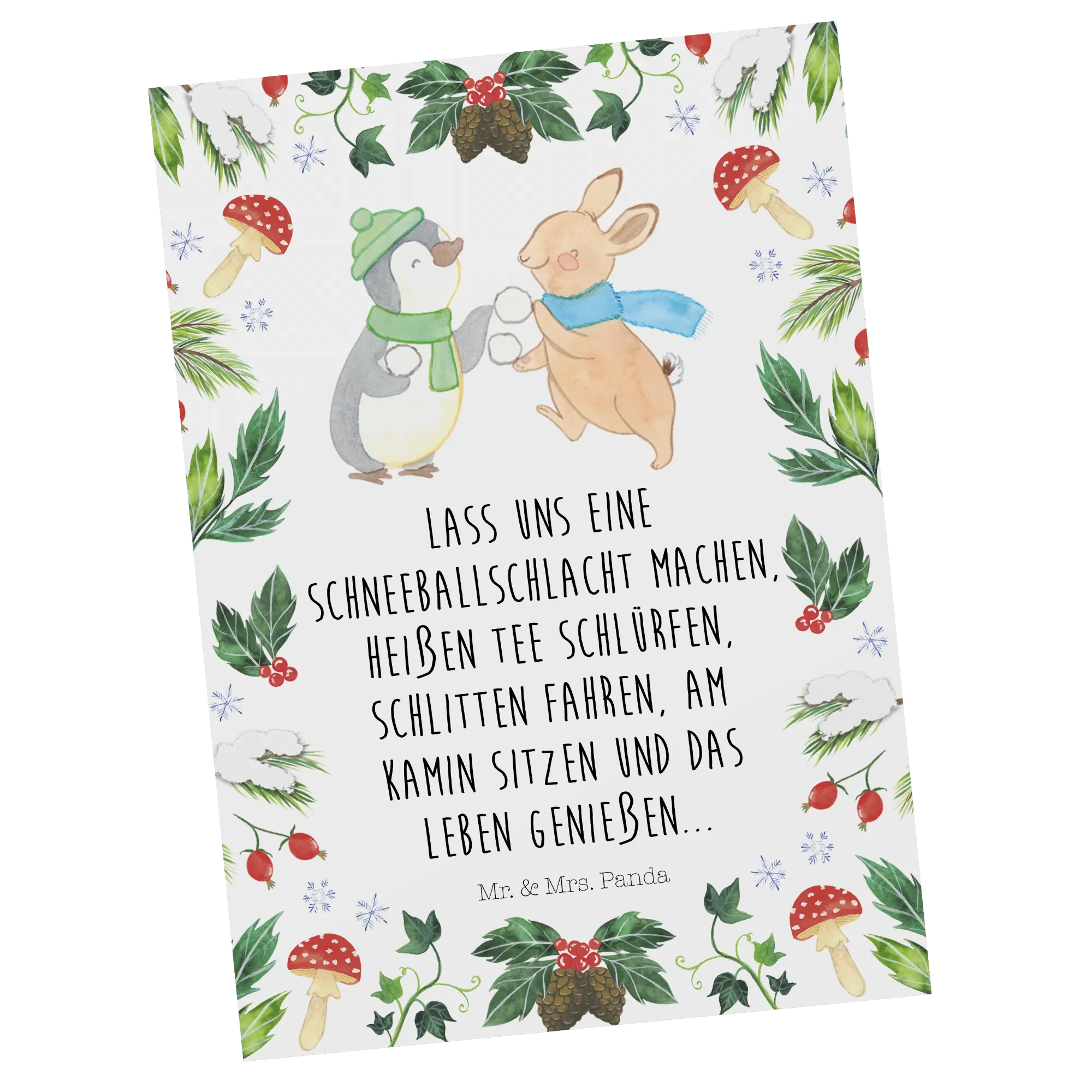 Welcome to the enchanting world of Mr. & Mrs. Panda, where every postcard is a little piece of art, waiting to be shared! Our delightful Postcard featuring a Penguin and Rabbit having a snowball fight is the perfect way to spread joy during the magical Winter season. Imagine the laughter and happiness as friends and family receive this charming postcard, beautifully adorned with hand-drawn illustrations that warm the heart.