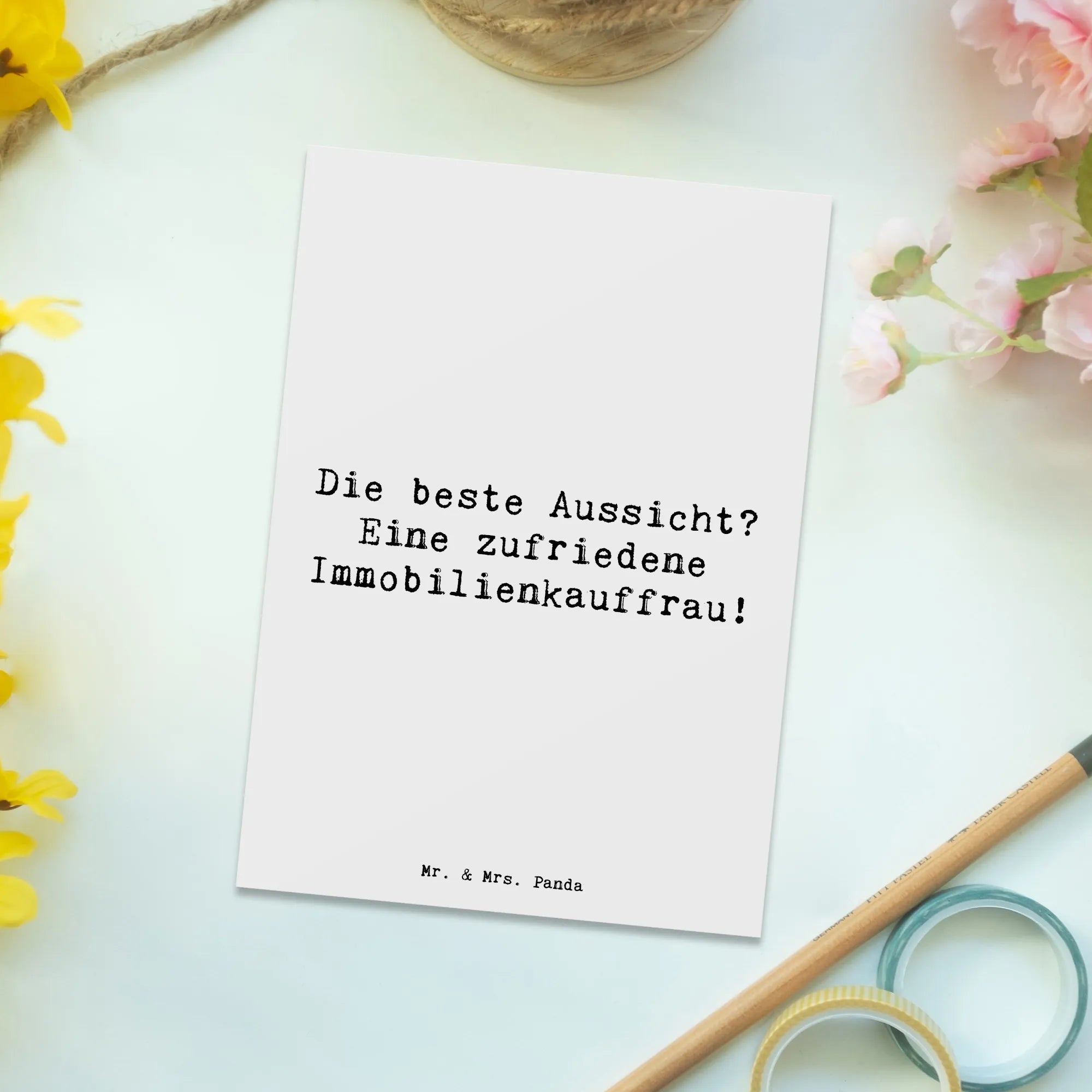 Postcard Saying Die beste Aussicht? Eine zufriedene Immobilienkauffrau – Mr. & Mrs. Panda