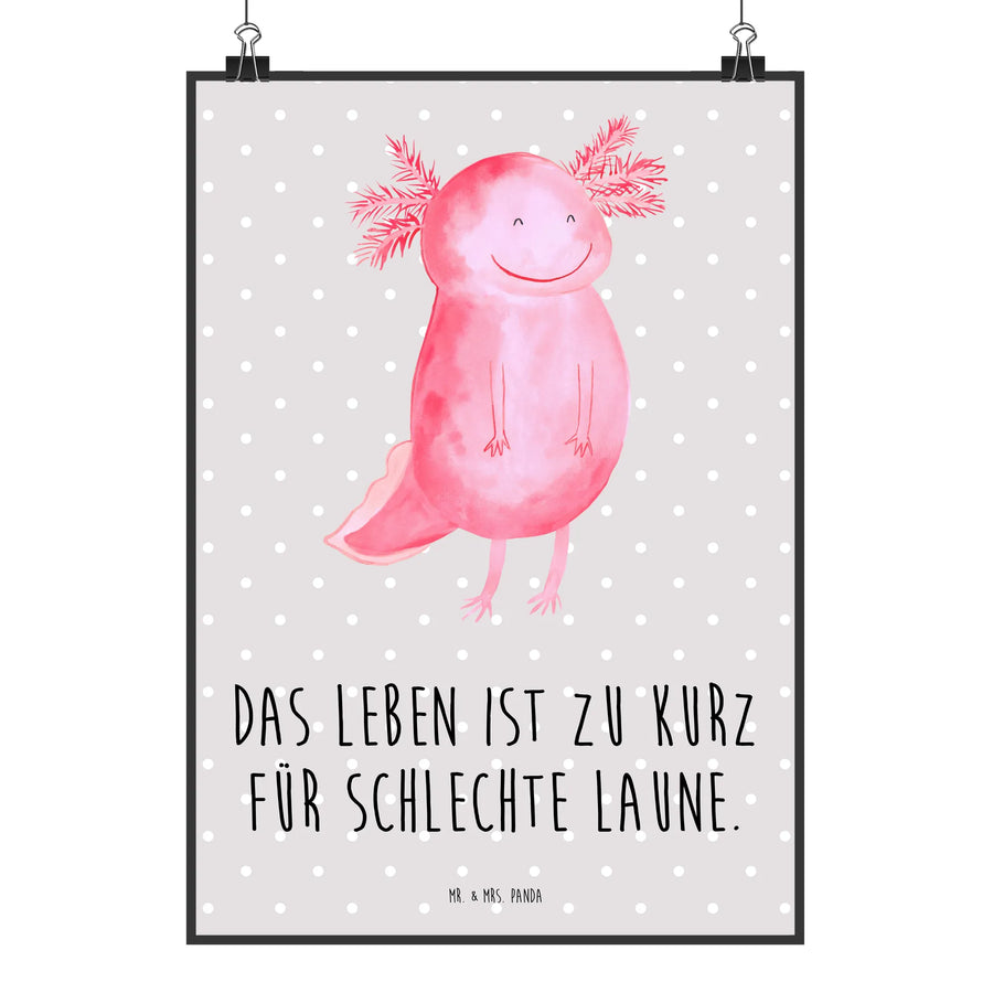 Poster axolotl Happy - DIN A0 - with saying - Pastel Gray
