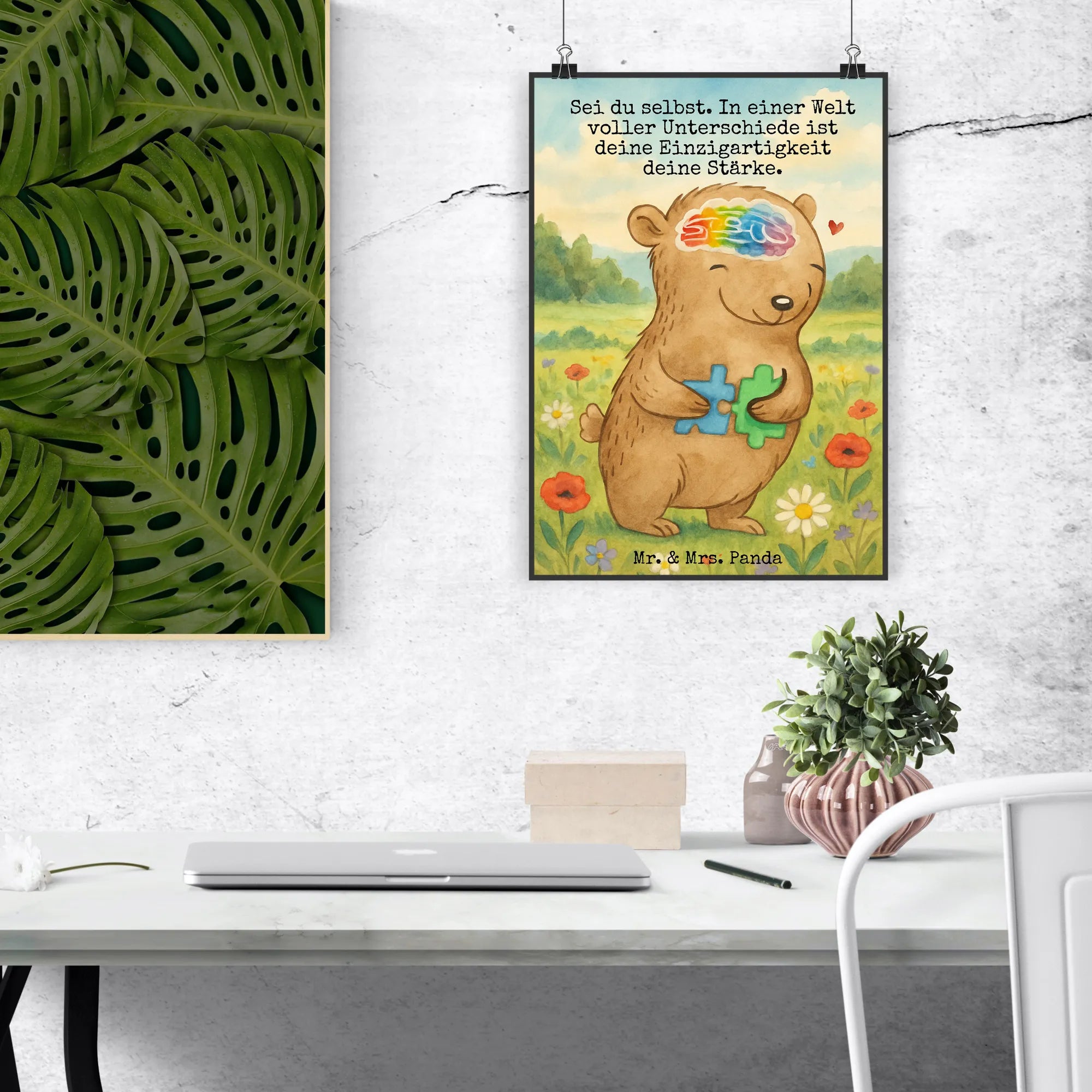 Poster Bear Autism Design typografie poster, Designposter, Wanddeko Bild, wanddruck, Kunstdruck, Wandbild, Design Poster, wanddeko, Wandschmuck, drucke, kunstposter, grafikposter, Deko Poster, Posterdruck, Mr. & Mrs. Panda Poster, Panda Poster, Wanddekoration, Plakat, Deko Bild, Bild, wandkunst, kunstdruck poster, Autismus, ASS, Asperger Autismus, Bär, Autismus-Spektrum-Störungen, Entwicklungsstörungen