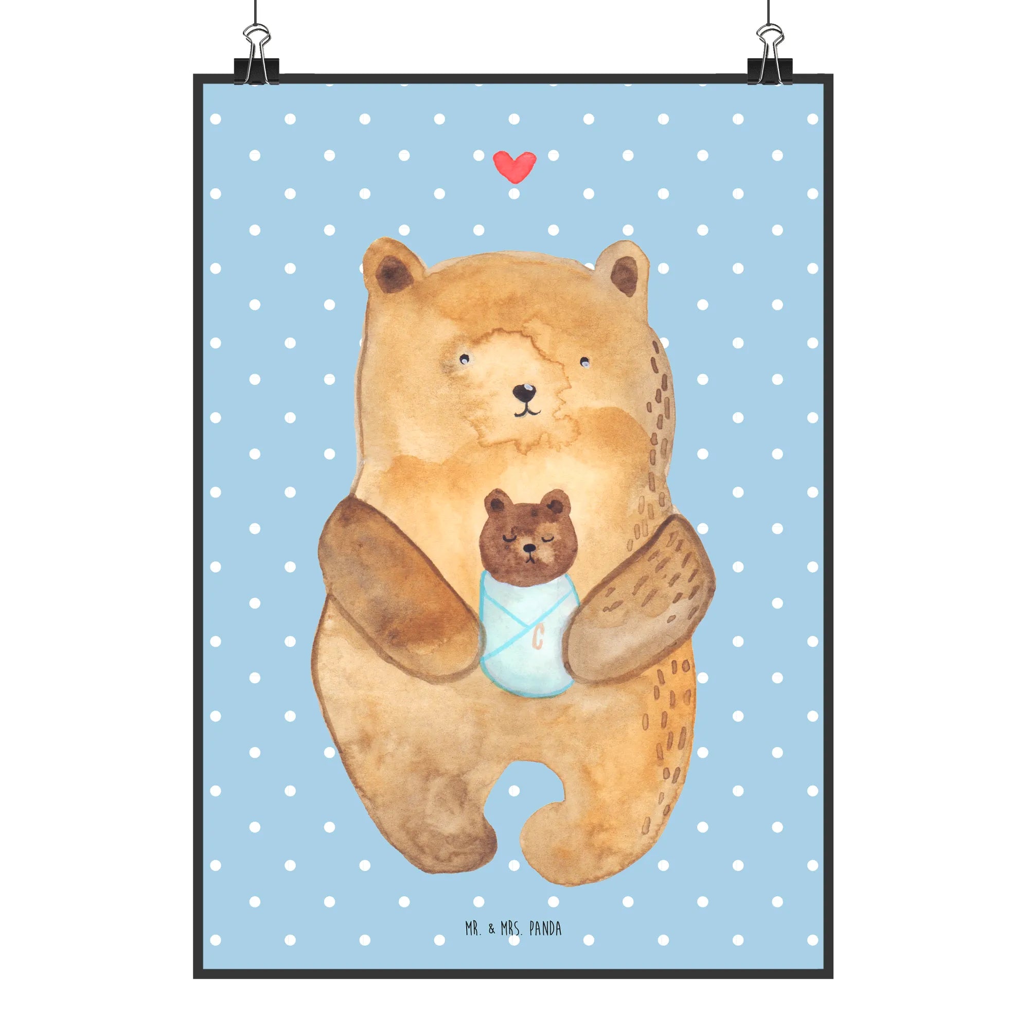 Introducing the adorable Poster featuring a bear with its baby, designed by Mr. & Mrs. Panda! This beautifully hand-painted artwork perfectly captures the sweet bond between a mother bear and her little one, making it an ideal addition to any nursery or kid's room. The soft blue pastel background adds a calming touch, creating a serene atmosphere for your child's space. Whether you're welcoming a new baby or celebrating a special christening, this poster is the perfect choice for conveying warmth and love.