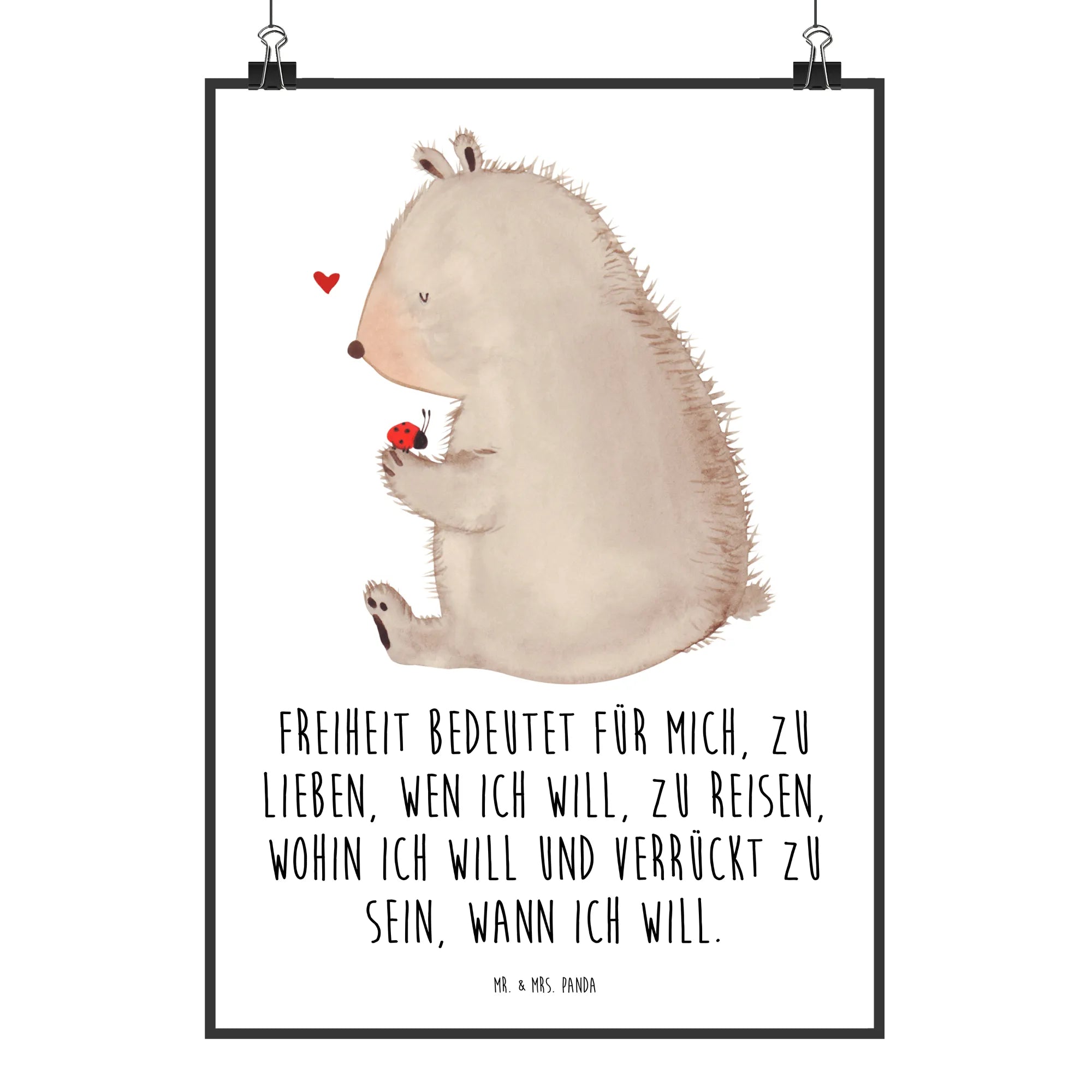 Charming Bear with Ladybird Motivational Design – Embrace Love and Freedom